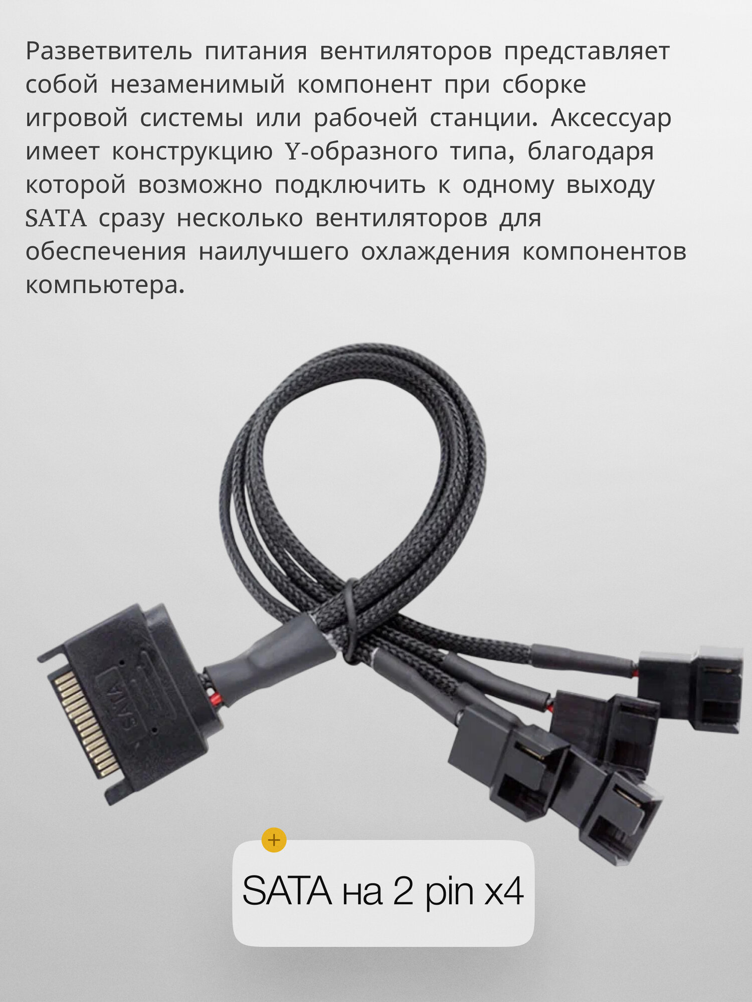 Ниже Вы можете прочитать отзывы на Разветвитель на 4 вентилятора, кулера, с SATA на 2 pin, удлинитель вентилятора, ознакомится с подробными характеристиками, посмотреть интересные обзоры и фотографии на Разветвитель на 4 вентилятора, кулера, с SATA на 2 pin, удлинитель вентилятора.
