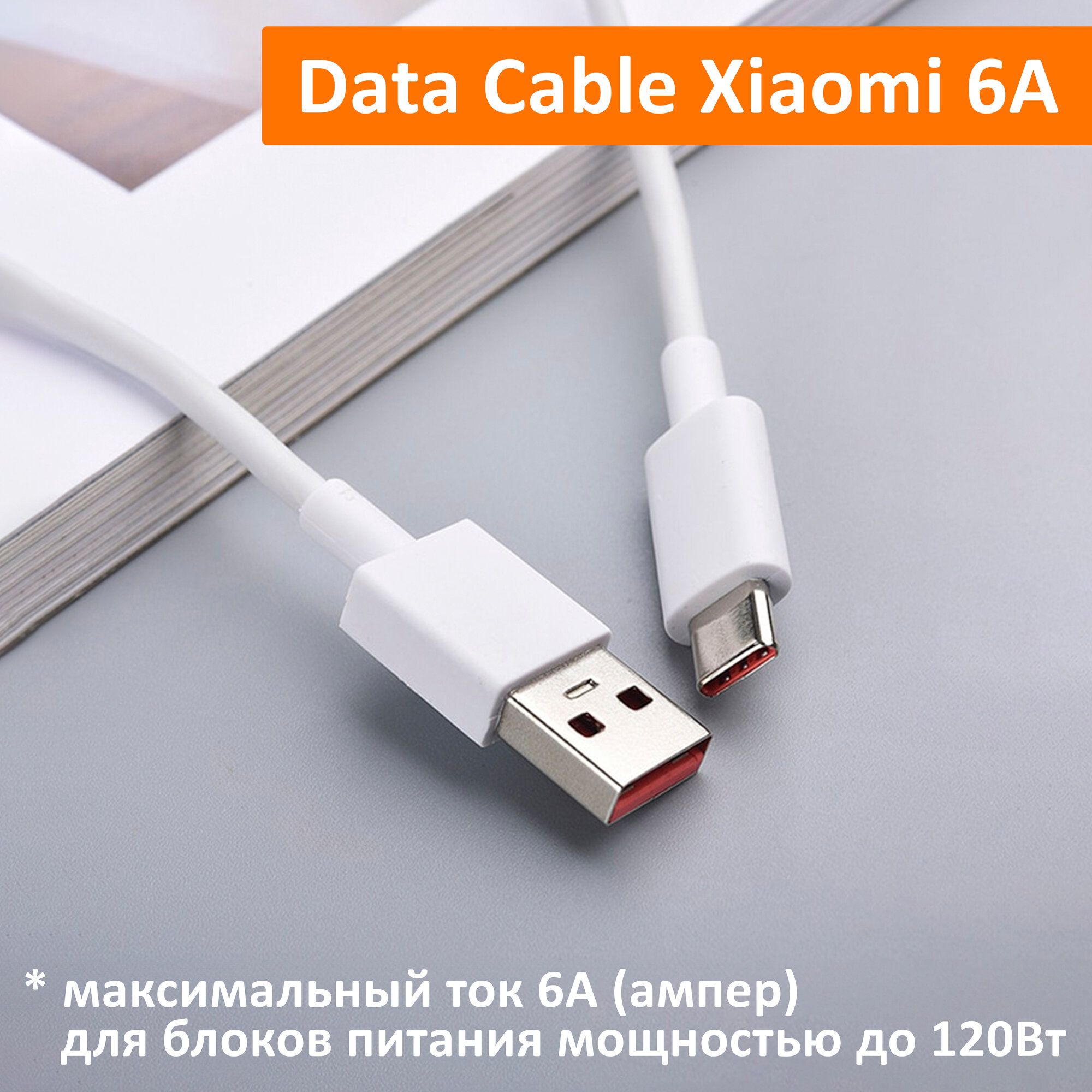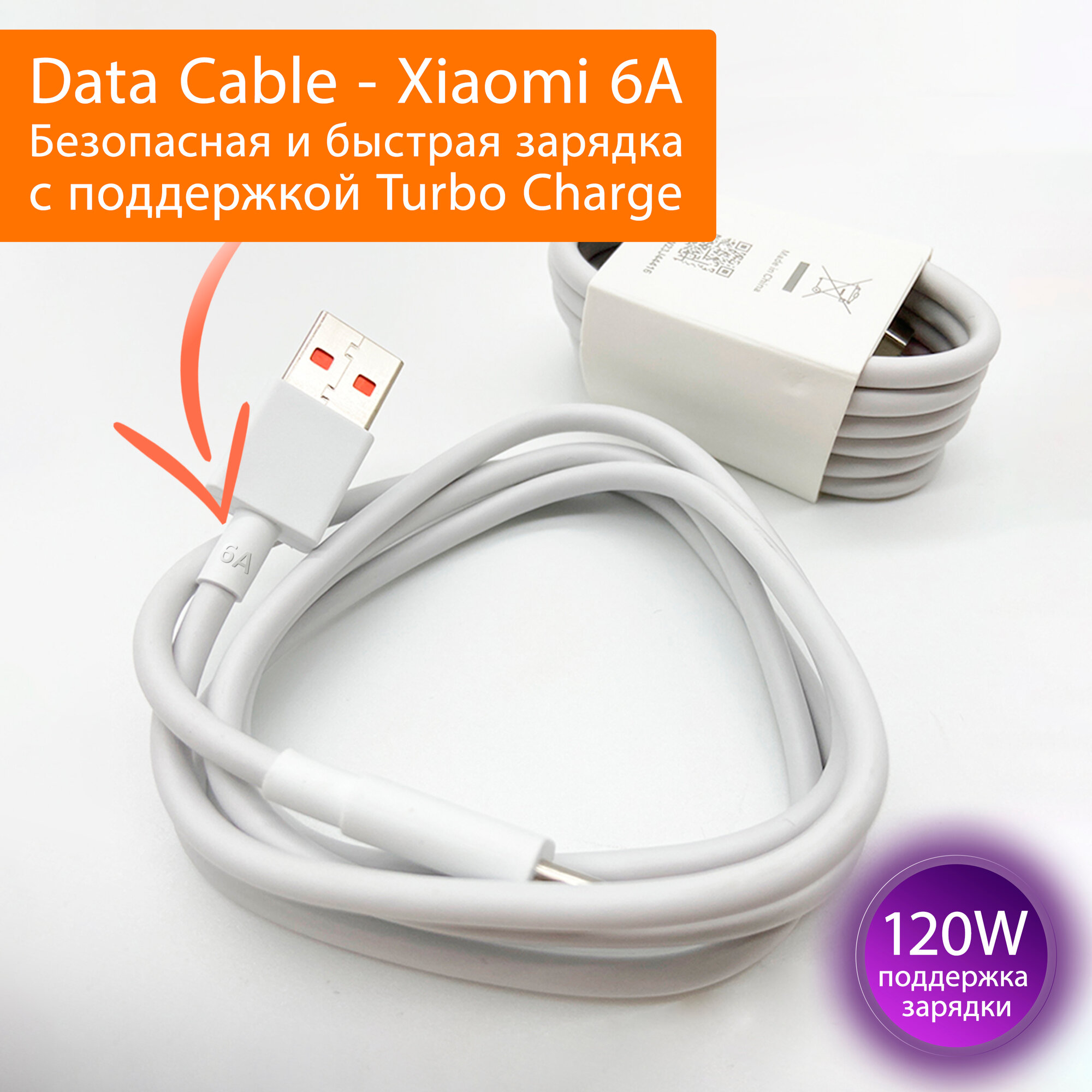 Кабель для быстрой зарядки телефонов и планшетов Xiaomi USB 6A, Quick Charge Turbo, Type-A to Type-C (BHR6032GL) 6 ампер до 120W. Белый Data Cable