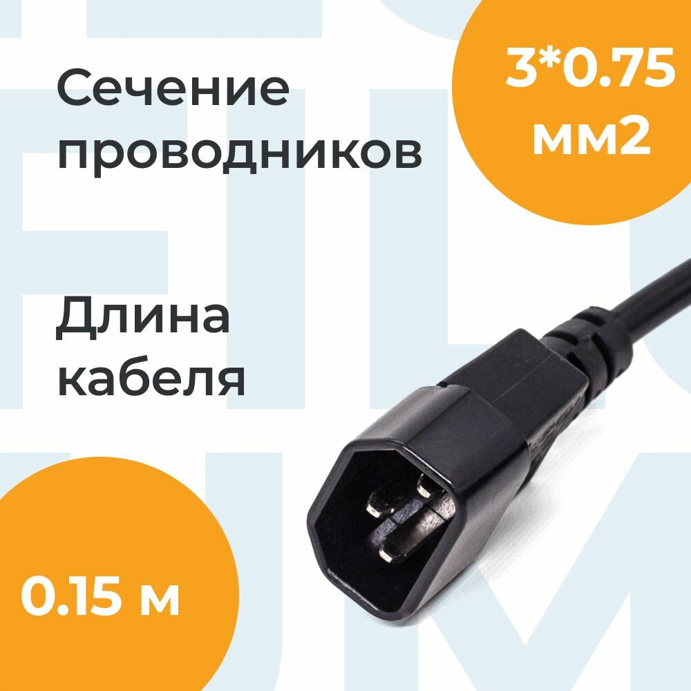 Переходник на евророзетку Filum CEE 7/3- С14, 3х0.75мм², 220В, 10A, 2200 Вт, под кабель питания, чёрный, 0.15м.