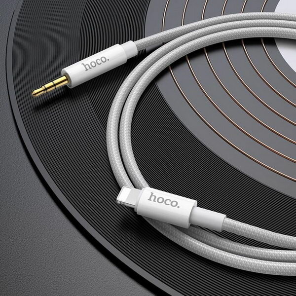 Кабель Hoco UPA19, Jack 3.5 мм (m) - Lightning, 1 м, нейлон, серебристый