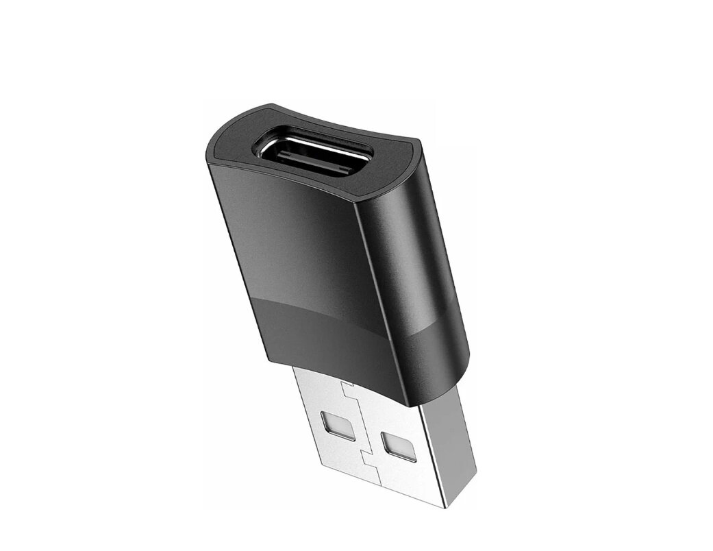 Переходник с USB 2.0 (папа/выход) на Type-C (мама/вход), Адаптер OTG тайп си для мобильных устройств, планшетов, смартфонов и компьютеров. Hoco UA17 Черный