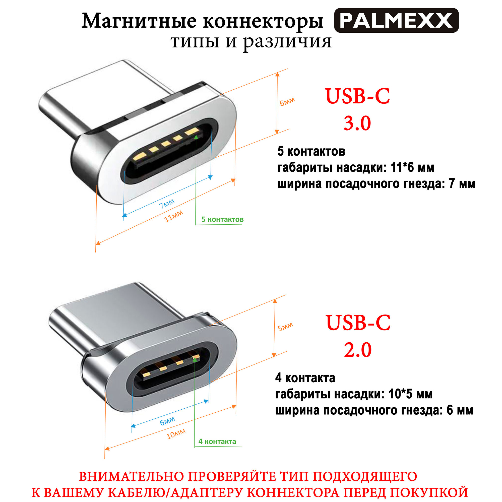 Комплект магнитных коннекторов PALMEXX, интерфейс USB-C 2.0, 2шт интересное: