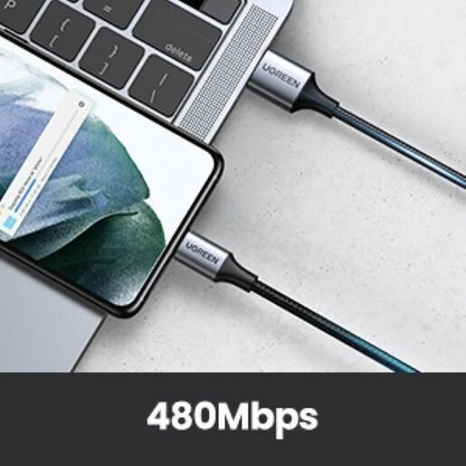 Кабель UGREEN US288 (60409) USB-A 2.0 to USB-C Cable Nickel Plating Aluminum Braid. Длина: 3м. Цвет: серебристый