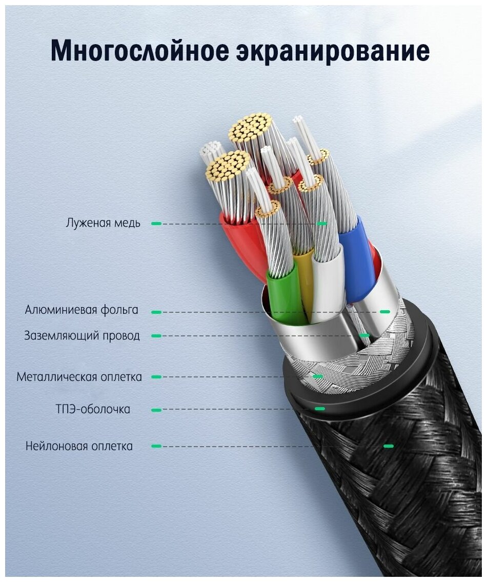 Кабель UGreen 60409, 3 м, 1 шт., серебристый