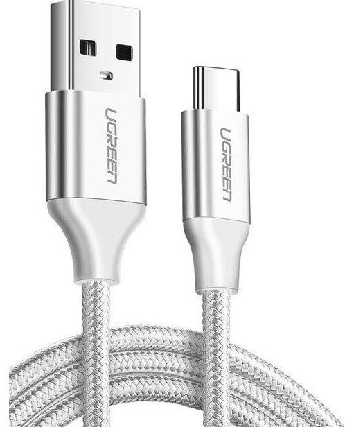 Кабель UGREEN US288 (60131) USB-A 2.0 to USB-C Cable Nickel Plating Aluminum Nylon Braid (1 метр) серебристый/белый