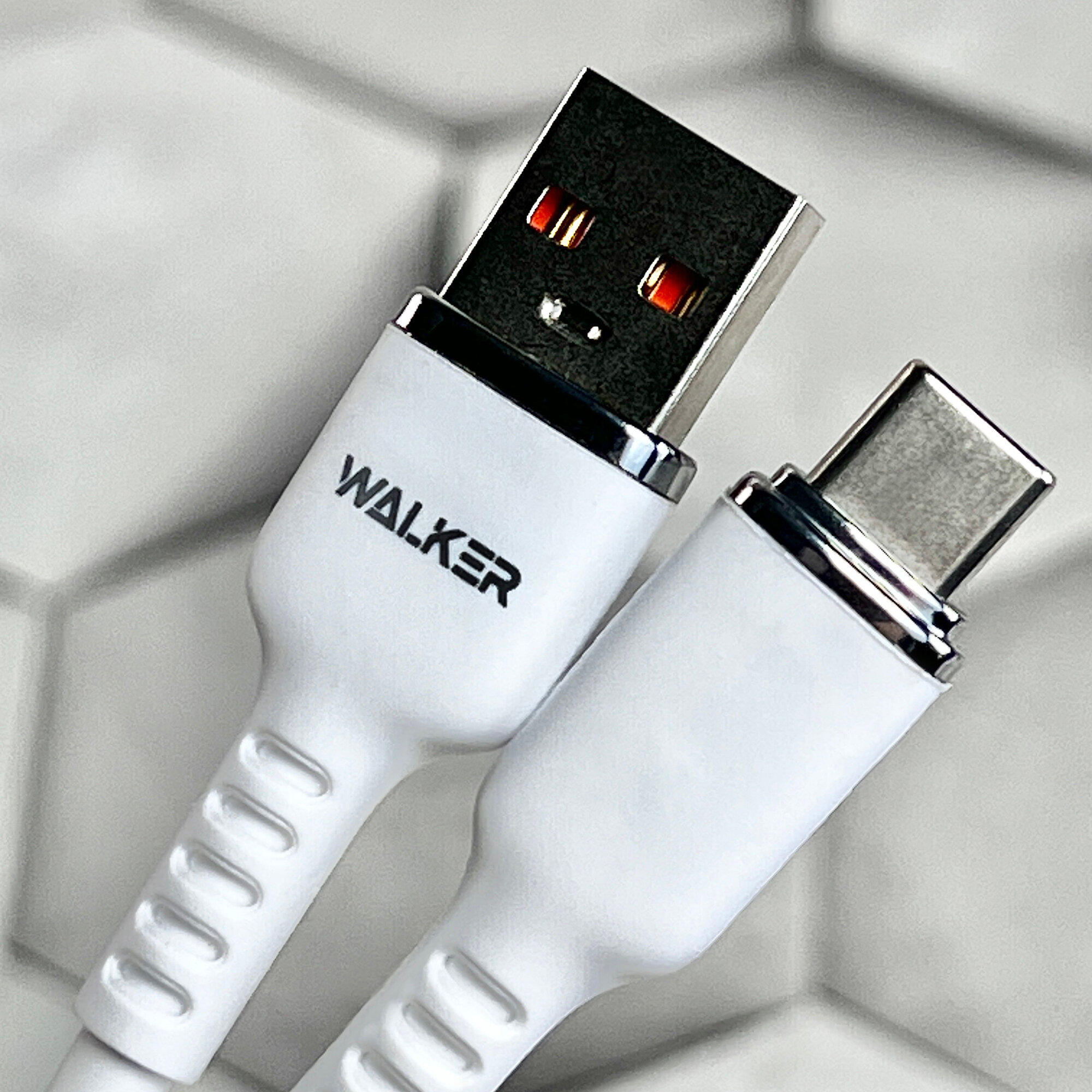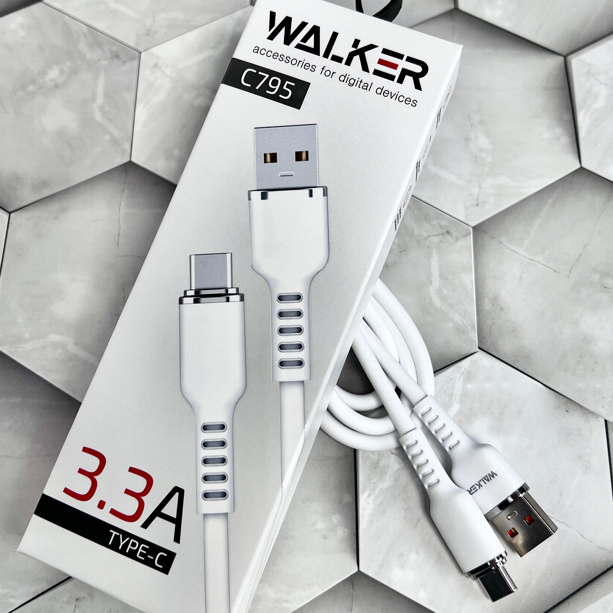 Купить Кабель USB с быстрой зарядкой и передачей данных, WALКЕR, C795, Type-C, 1м, 3.3А, мягкий силикон, переходник переходник usb type c для Android, белый