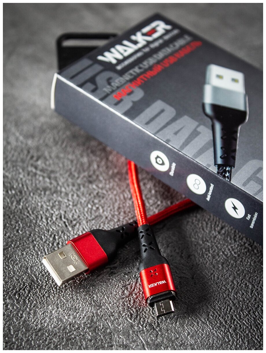 Магнитный кабель с быстрым зарядом 3.3А, передача данных USB - micro USB WALKER C970, зарядное устройство, зарядка микро на телефон android, красный