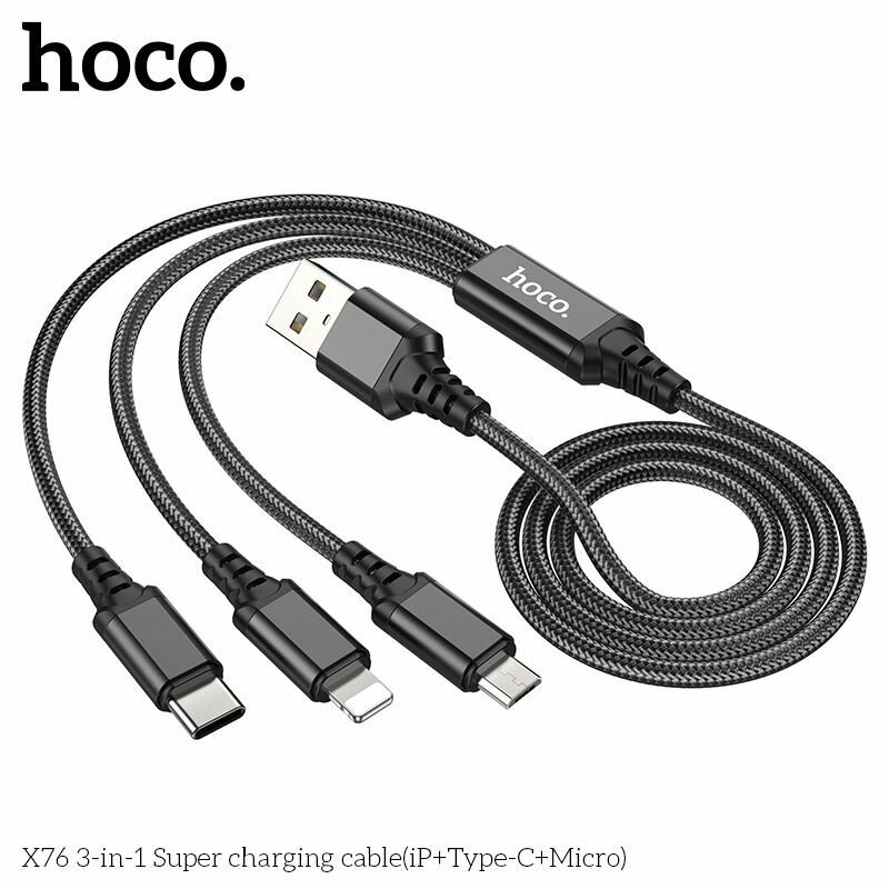 Кабель 3-в-1 Hoco X76 Super зарядный провод/Super charging cable(iP+Type-C+Micro) black/red/blue