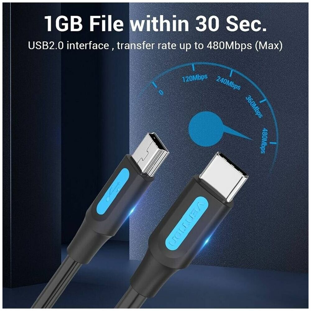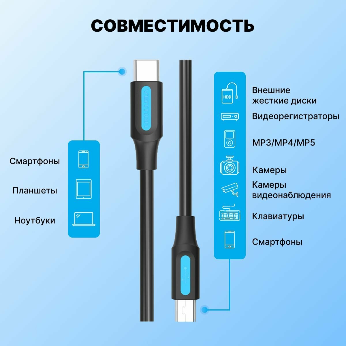 Кабель питания USB type c для зарядки и передачи данных Vention длина 1.5 м, usb 2.0 CM/mini-B 5pin, тайп си, арт. COWBG интересное: