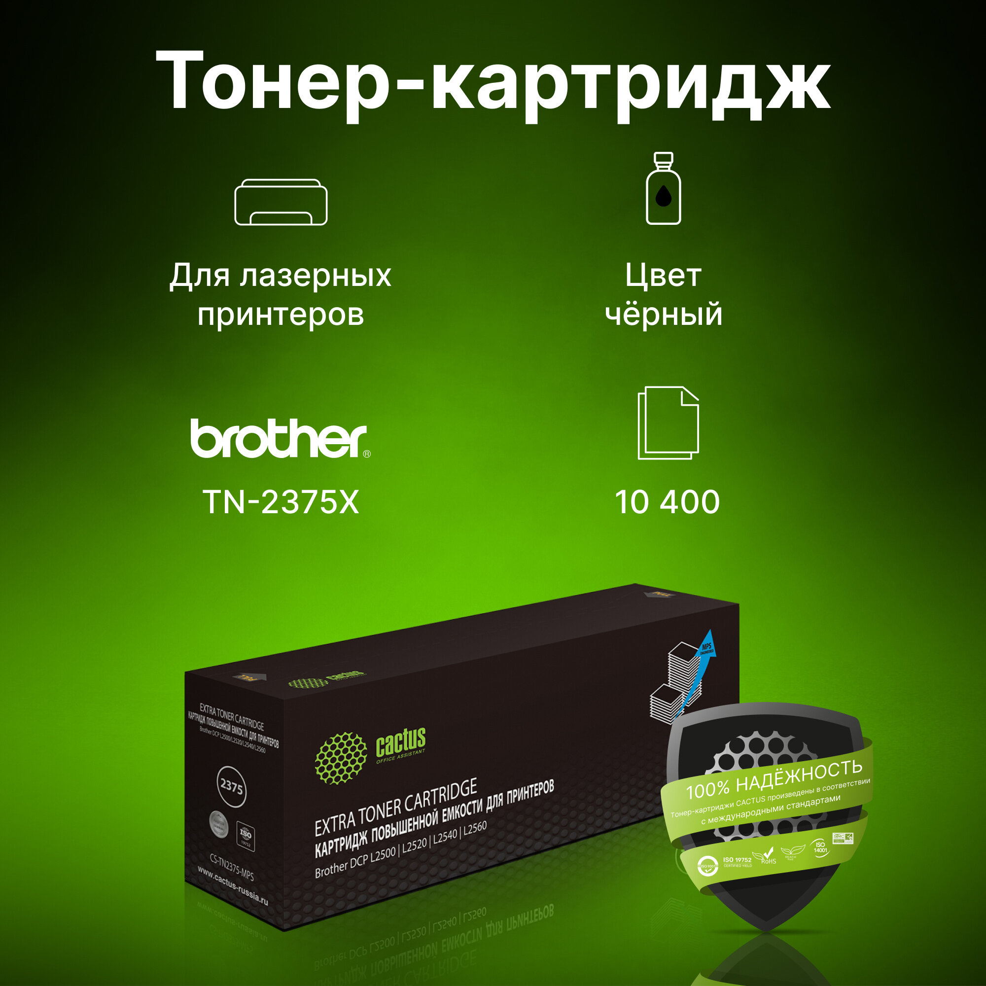 Картридж Cactus CS-TN2375-MPS TN-2375X черный, для BROTHER DCP L2500/L2520/L2540/L2560, ресурс до 10400 страниц