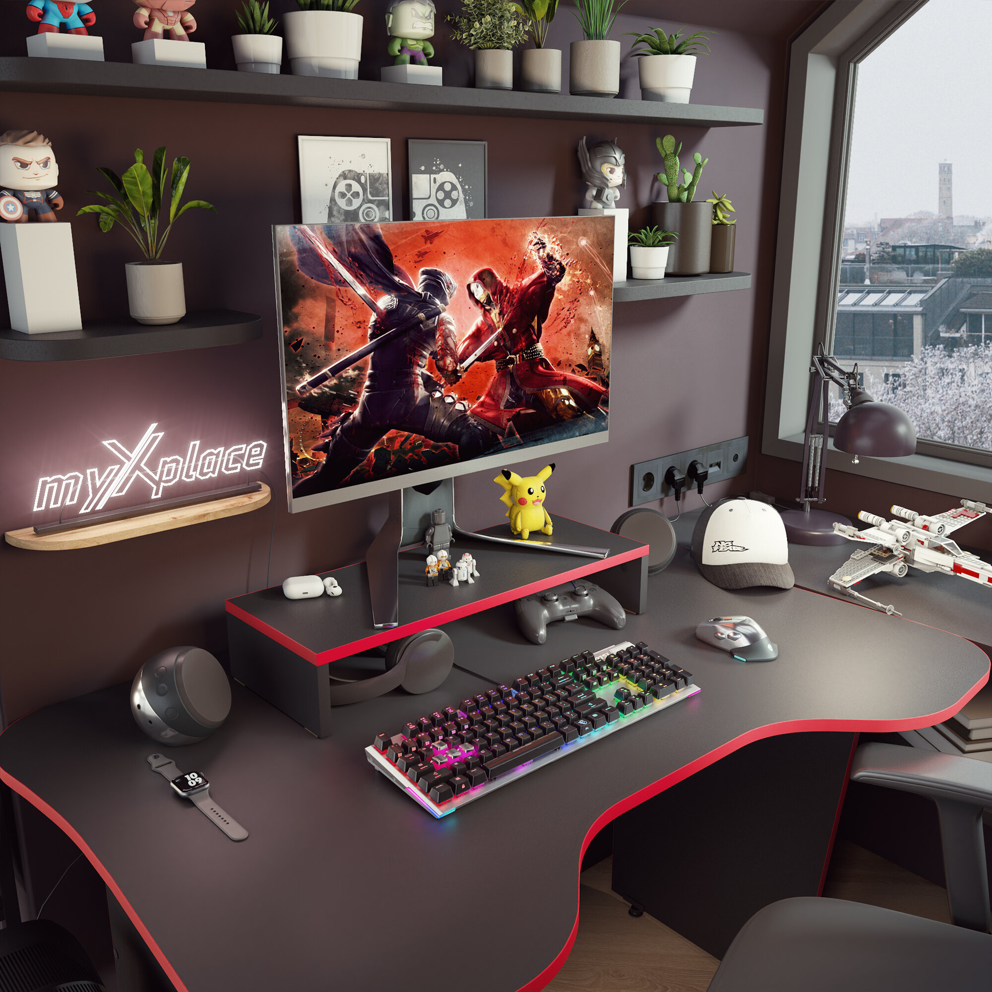 Купить Подставка настольная для монитора Xplace, Черно-красная, ЛДСП