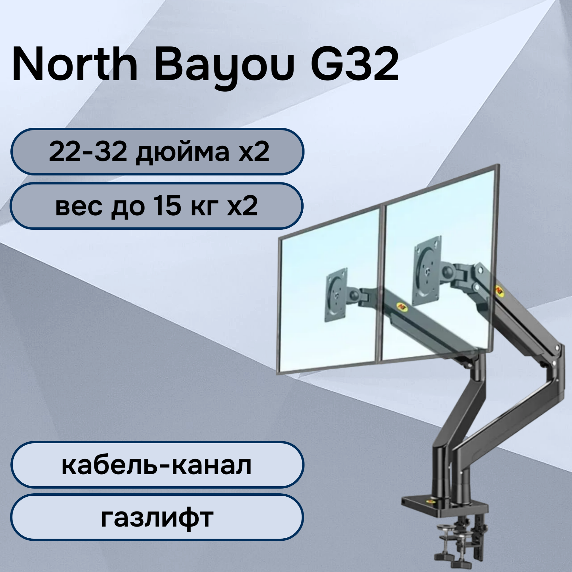 Настольный кронштейн для двух мониторов NB North Bayou G32, 22-32" до 15 кг, черный интересное: