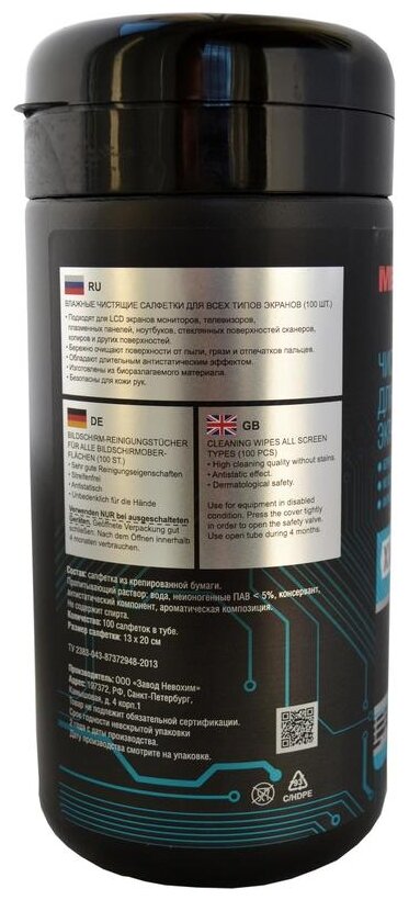 BRAUBERG Салфетки для экранов всех типов и оптики brauberg max плотные, 13х17 см, туба 100 шт., влажные, 513284
