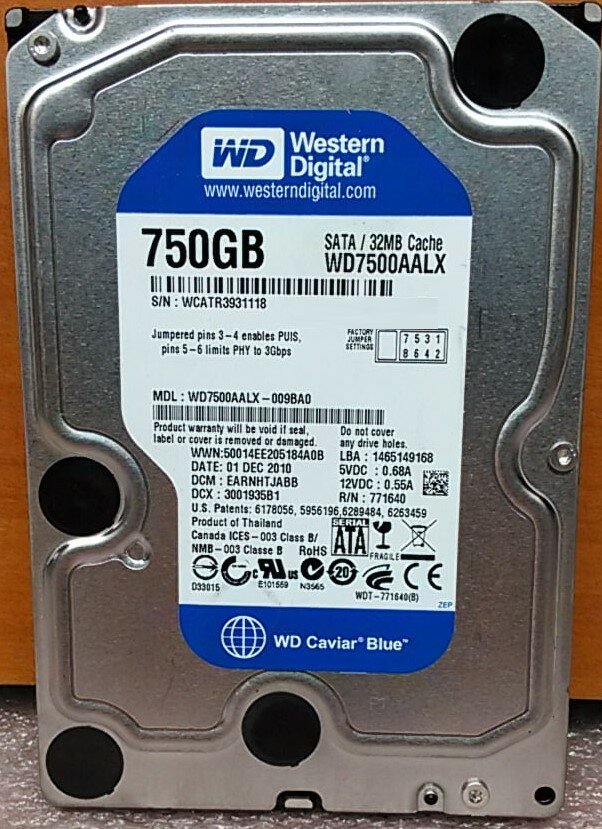 Ниже Вы можете прочитать отзывы на Жесткий диск WD Blue WD7500AALX, 750ГБ, 3,5", 7200об/мин, для настольного ПК, ознакомится с подробными характеристиками, посмотреть интересные обзоры и фотографии на Жесткий диск WD Blue WD7500AALX, 750ГБ, 3,5", 7200об/мин, для настольного ПК.