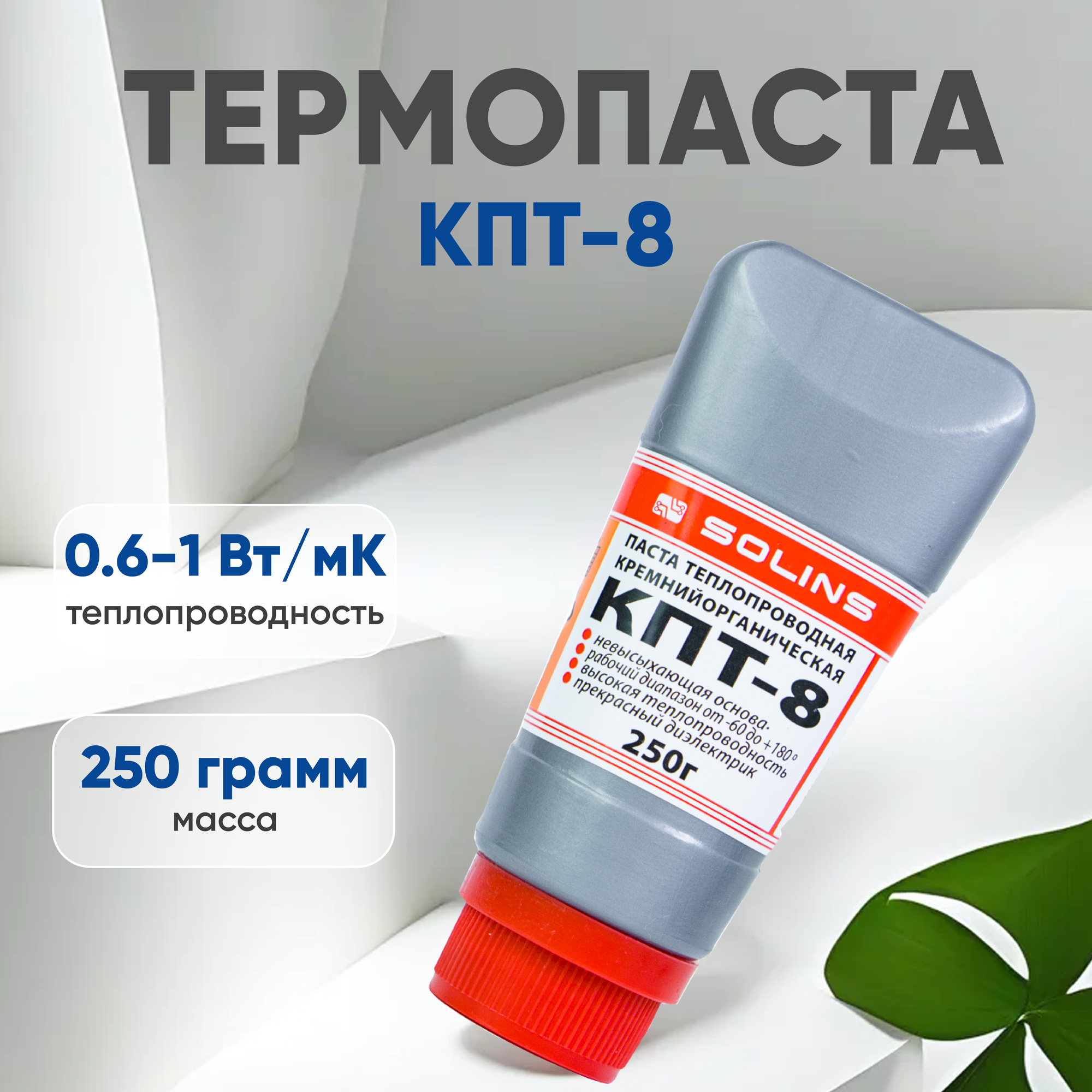 Паста теплопроводная SOLINS КПТ-8 кремнийорганическая / Охлаждающая термопаста для ноутбука, компьютера, процессора, пк, видеокарты, теплопроводящая, 250 г
