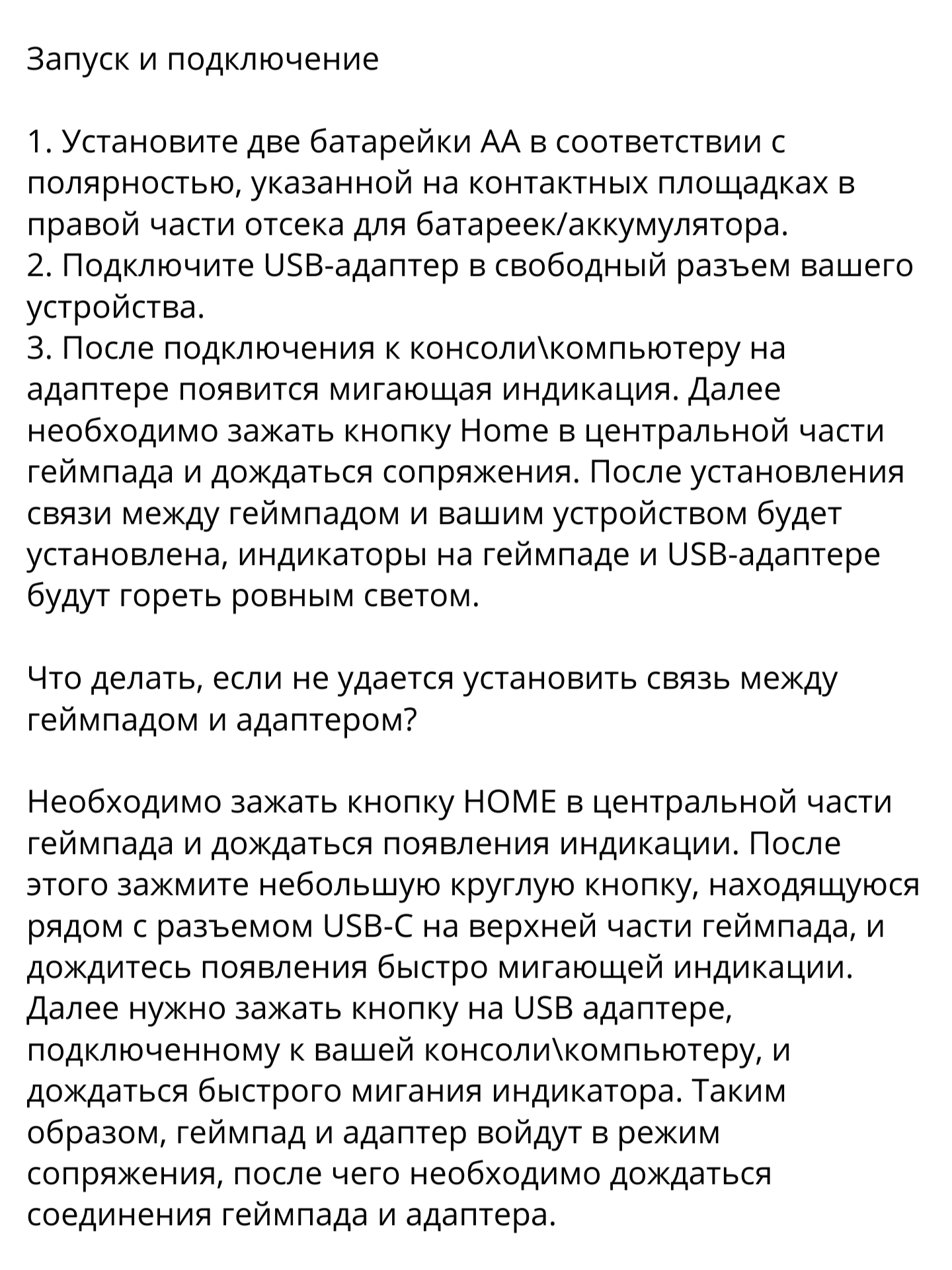 | Подробная комплектация | Беспроводной геймпад, USB-ресивер, батарейки, коробка |