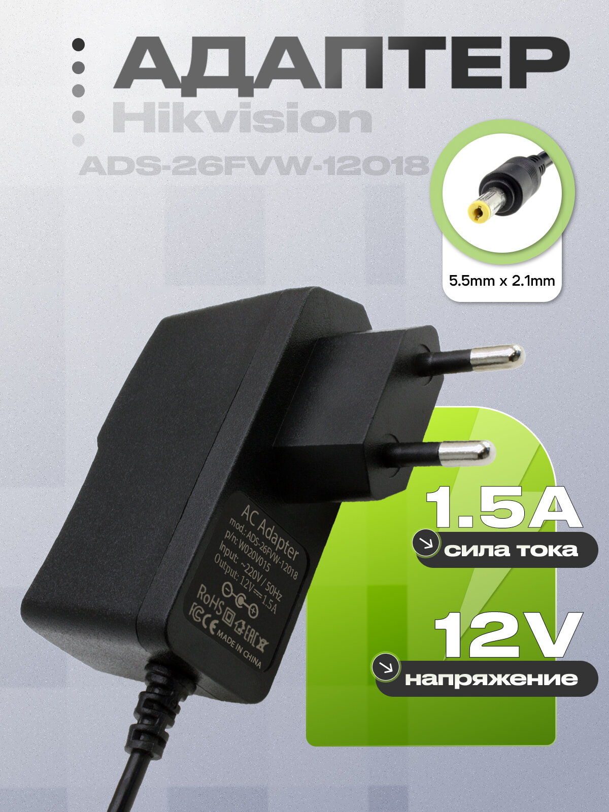 Адаптер (блок) питания 12V,1.5A,18W,5.5mm x 2.1mm(ADS-26FSG-12 12018EPG)для видеокамеры, видеорегистр Hikvision, HiWatch интересное: