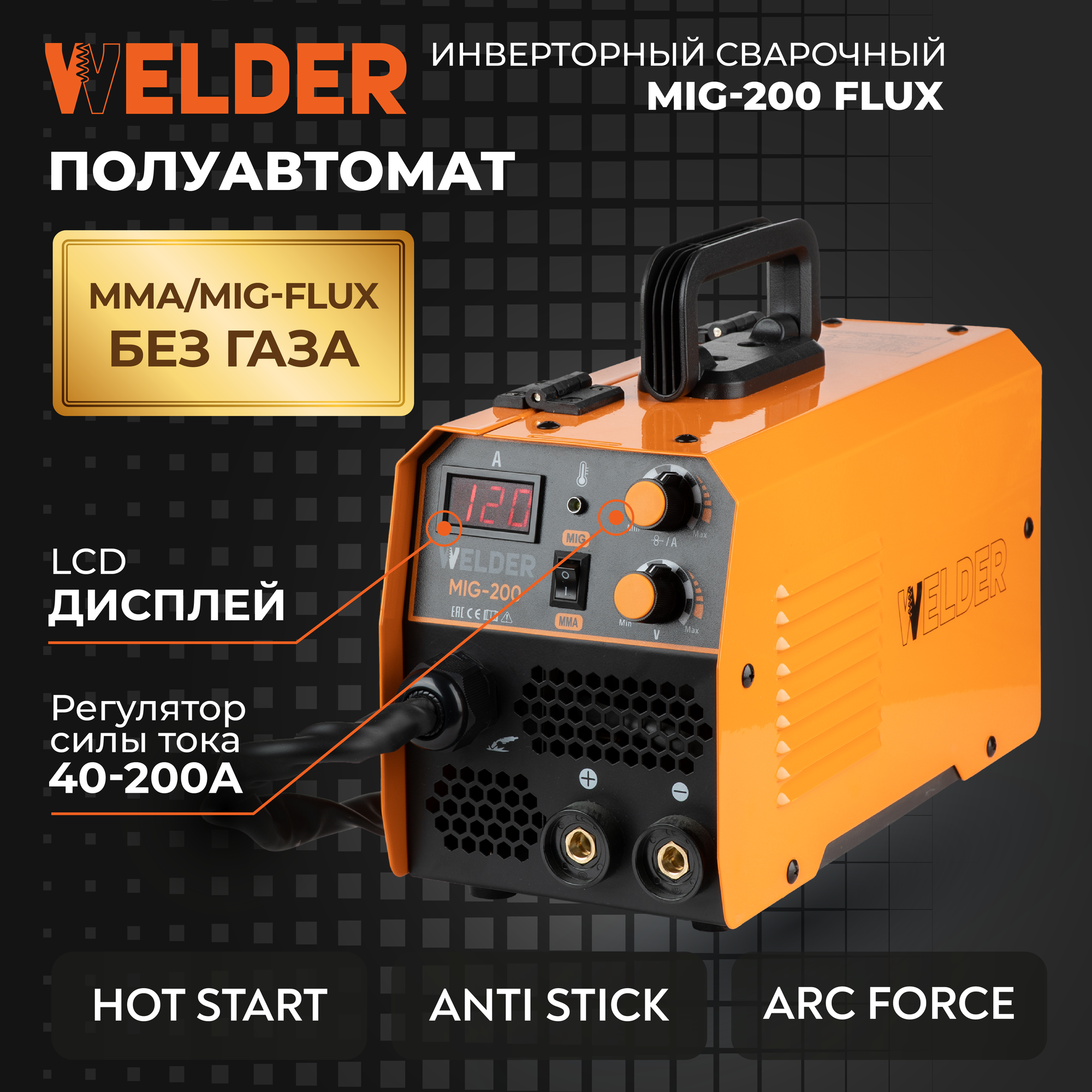Купить Сварочный полуавтомат WELDER MIG-200 FLUX, ручная дуговая сварка