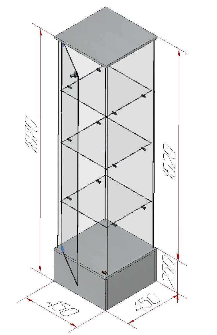 Купить Витрина стеклянная торговая для музея для магазина 180 х 45 х 45 см