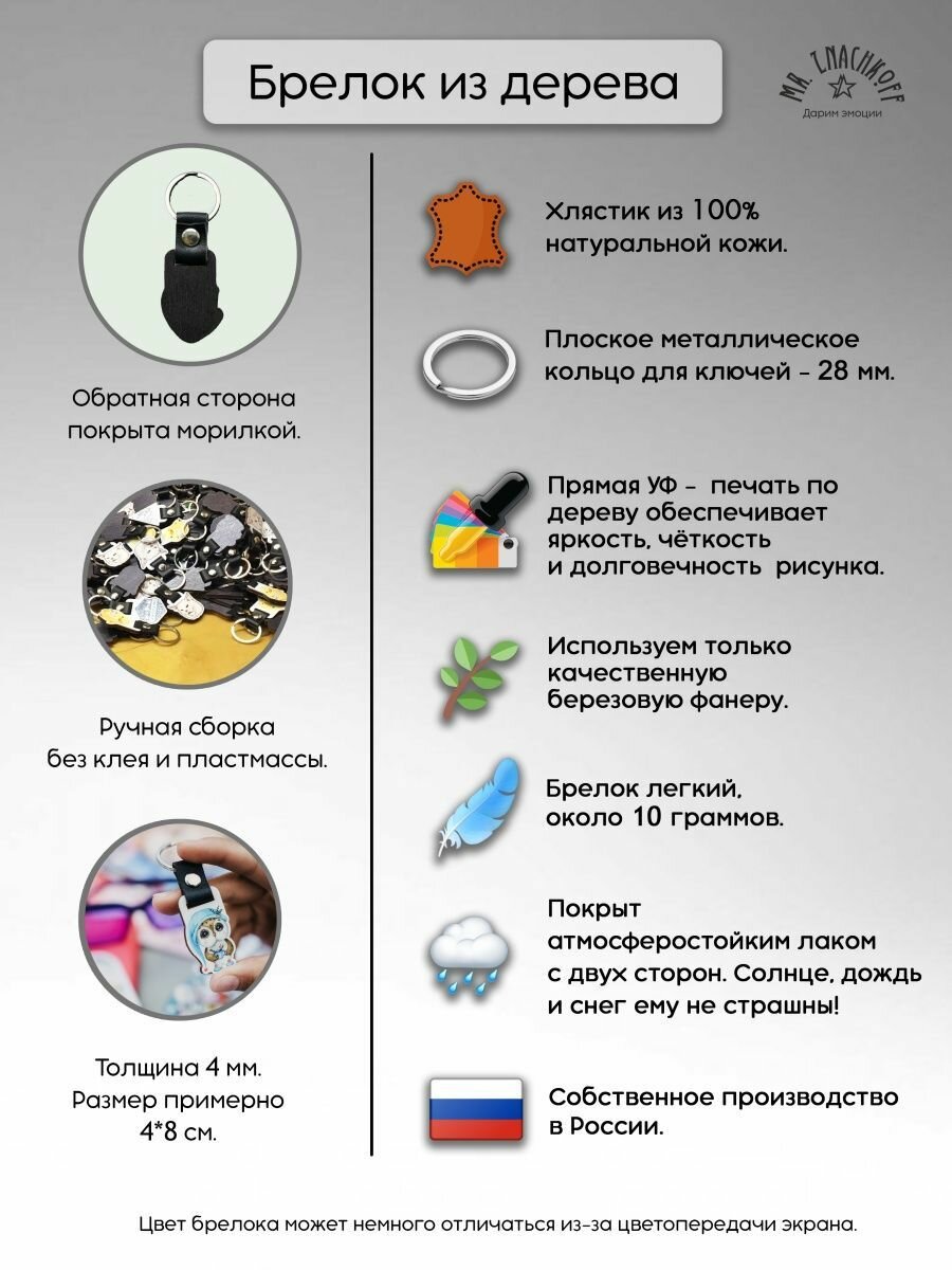 | Дополнительная информация | брелок из дерева с хлястиком из натуральной кожи |