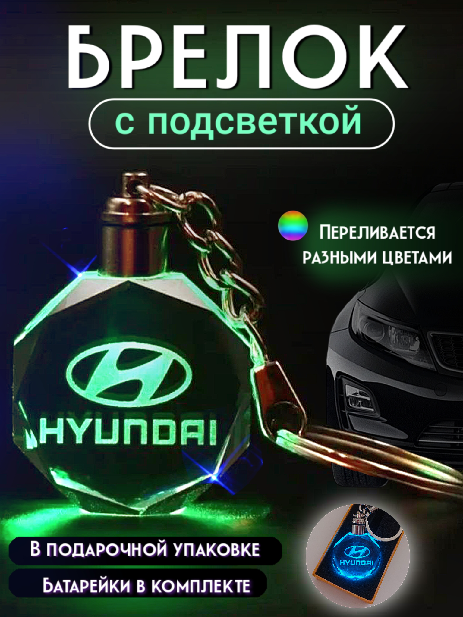брелок автомобильный Hyundai с подсветкой, брелок для ключей