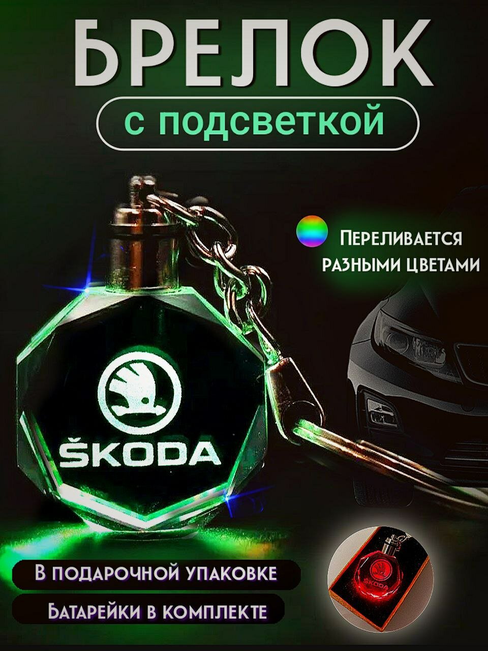 брелок автомобильный Skoda с подсветкой, брелок для ключей