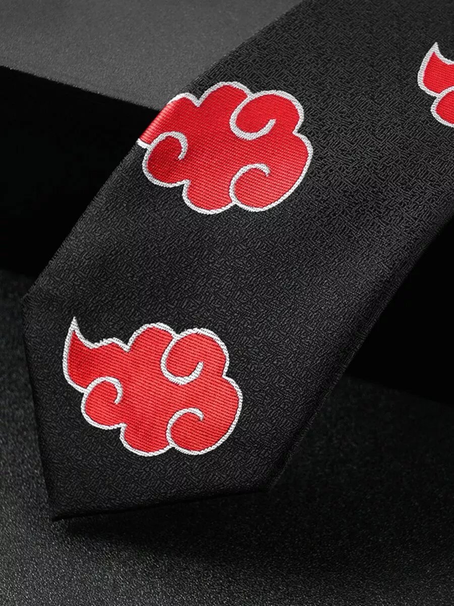 Галстук с изображением символа Акацуки 145 см / Атрибутика для аниме косплея