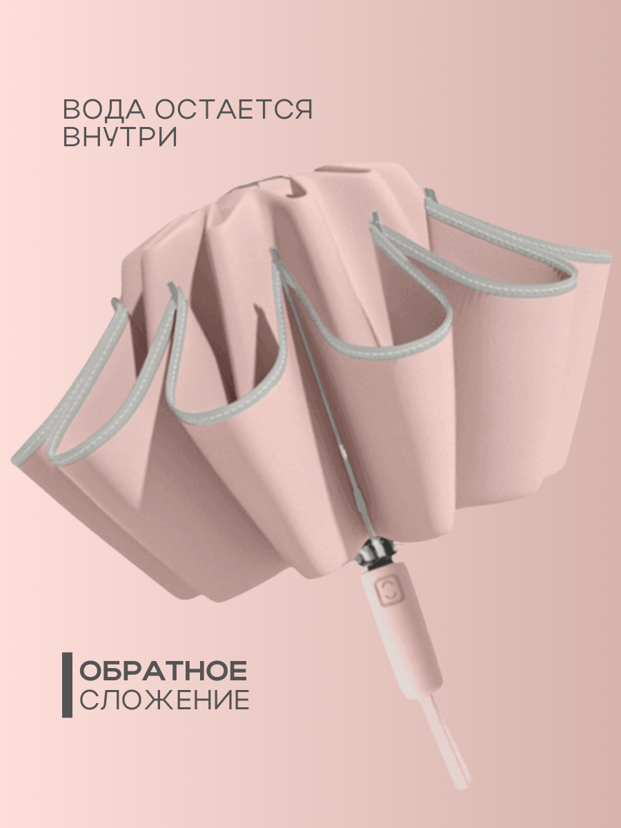 Зонт-автомат "Антиветер" с обратным сложением, розовый