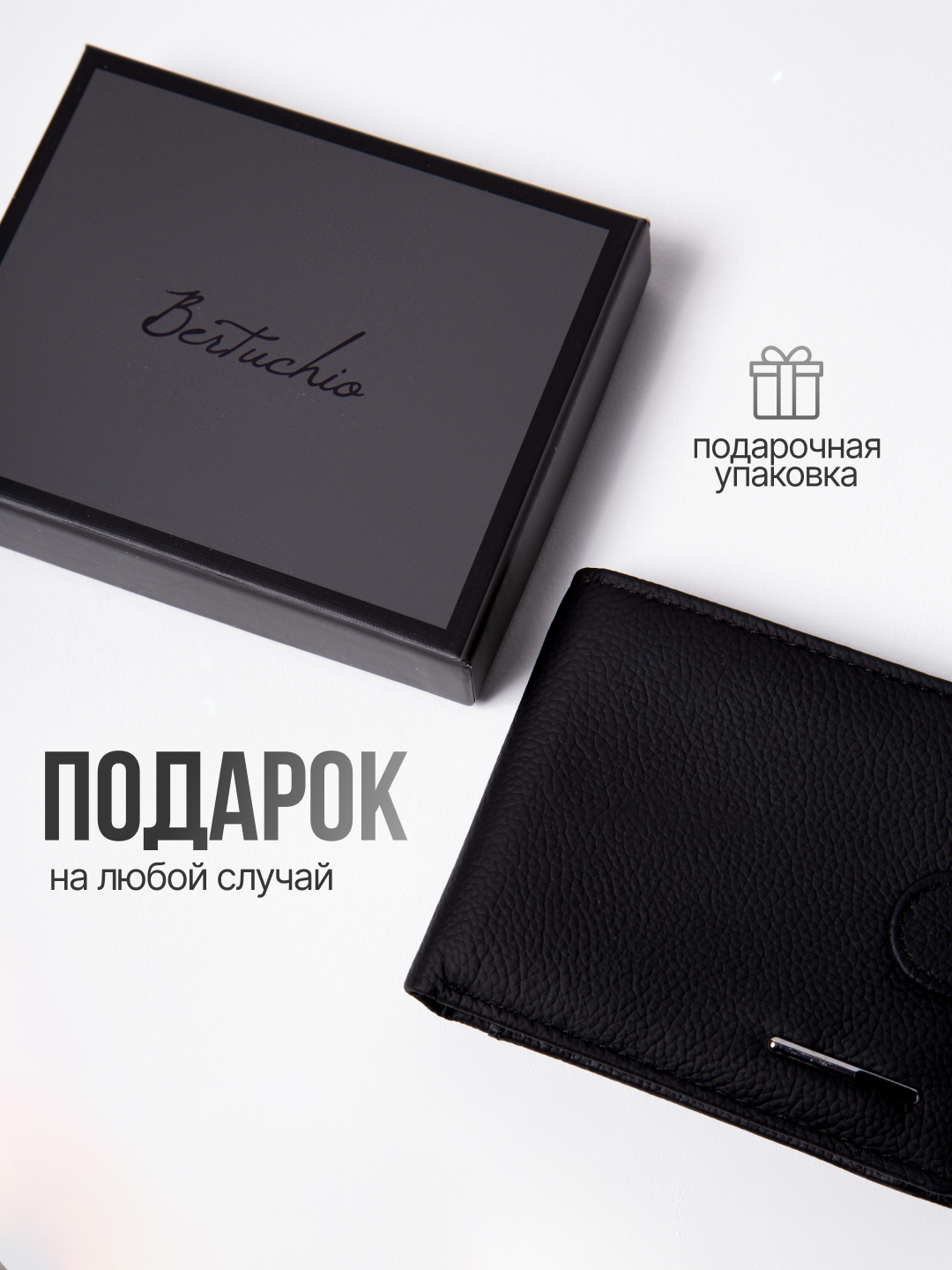 Портмоне Bertuchio, фактура матовая, черный интересное:
