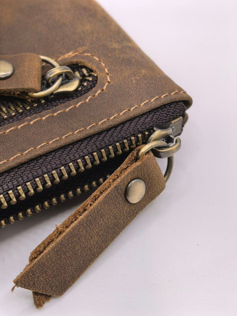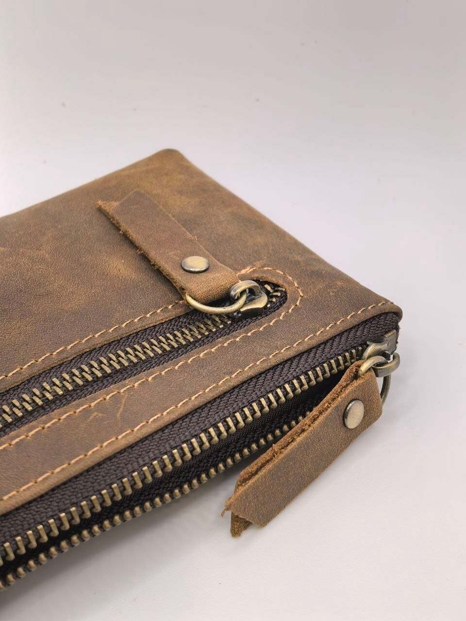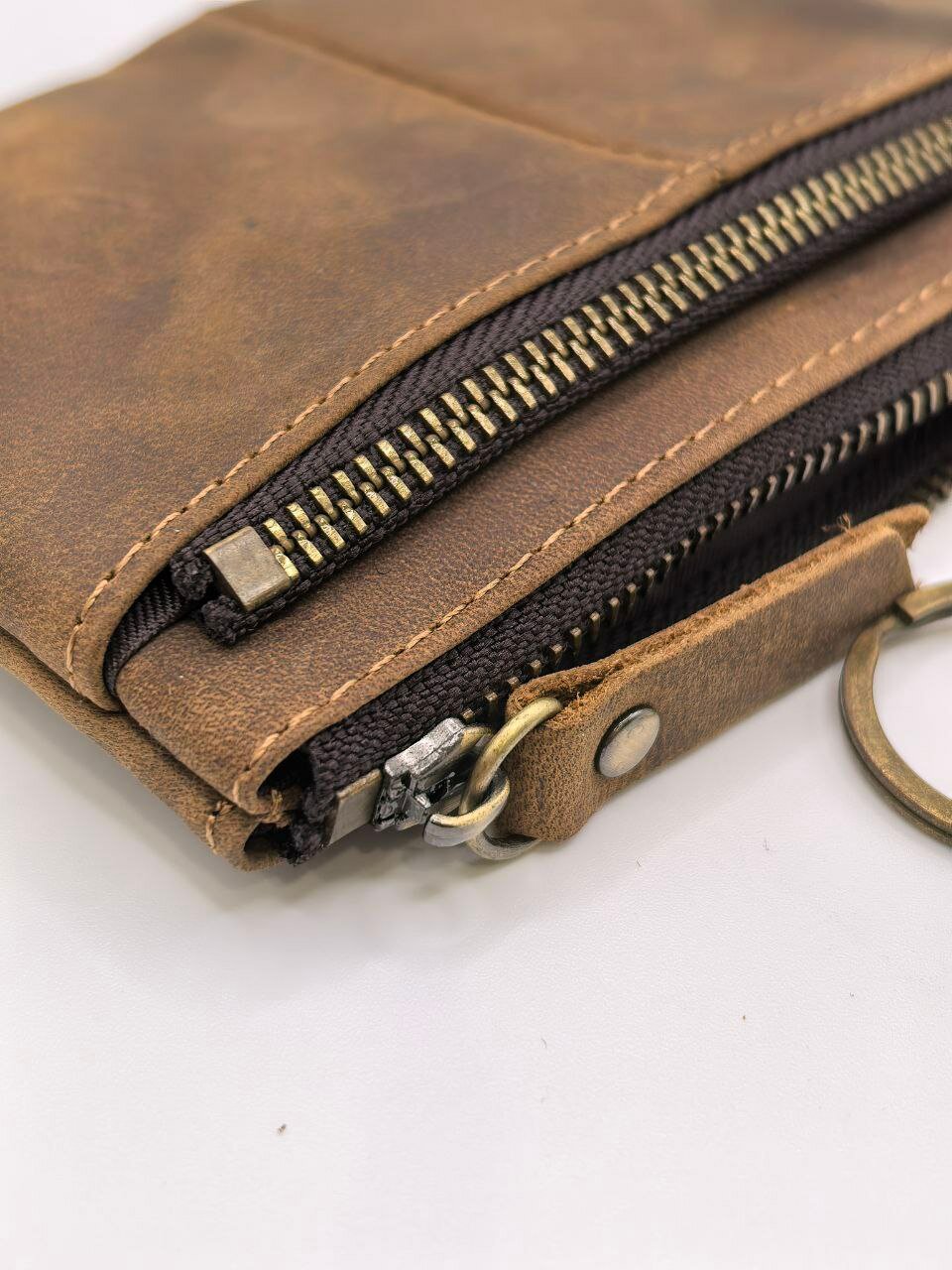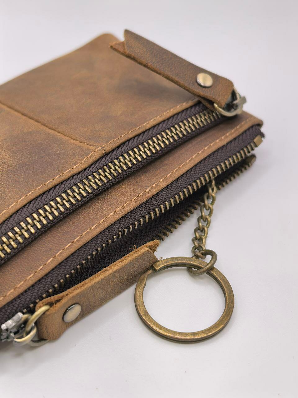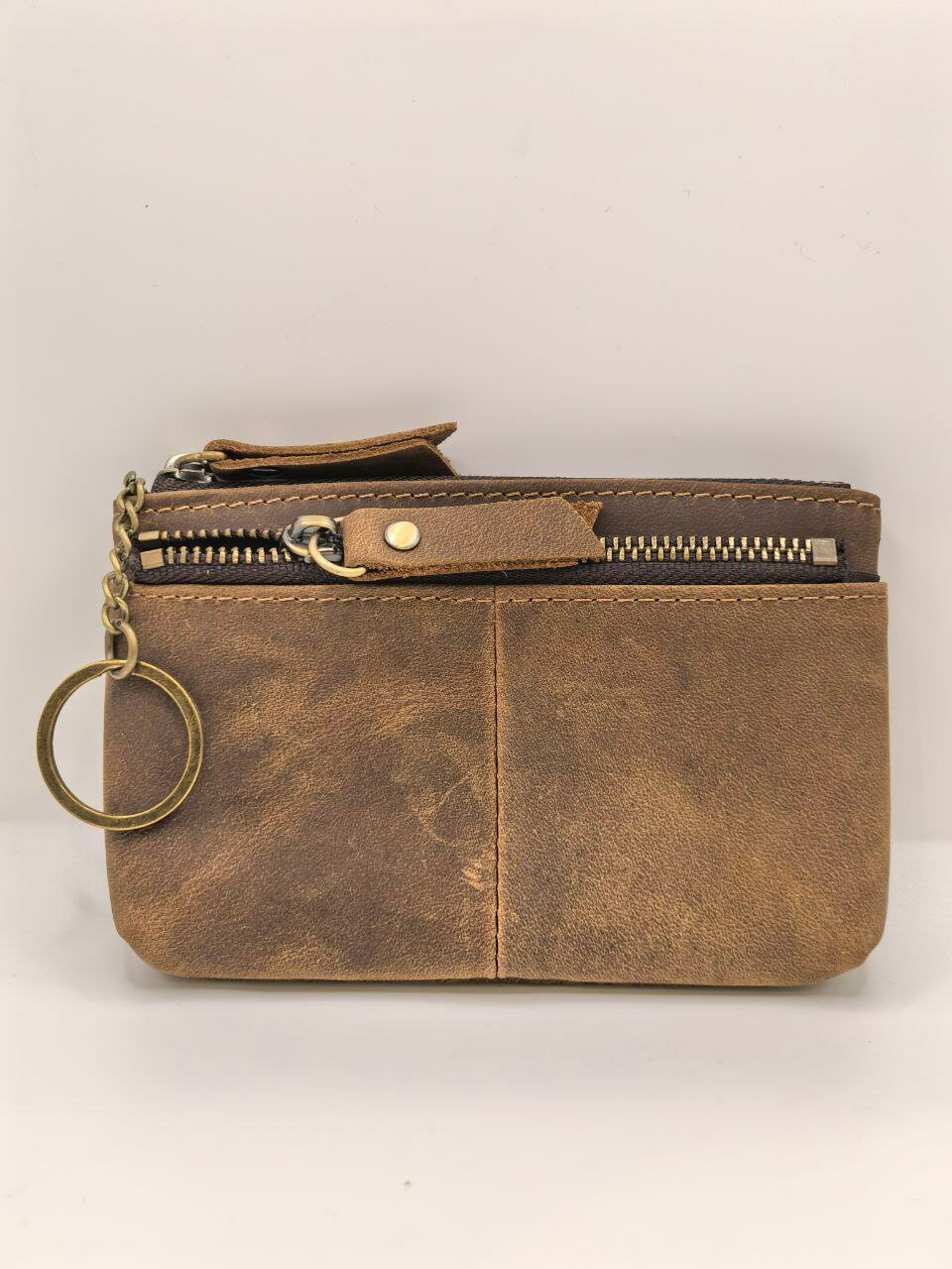 Ключница кожаная, кошелек, отделение для монет, отделение для карт, коричневый