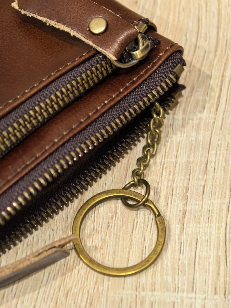 Ключница кожаная, кошелек, отделение для монет, отделение для карт, коричневый