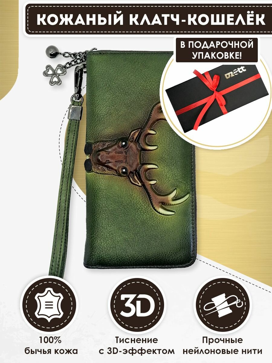 Купить Кошелек Dzett, фактура тиснение, зеленый