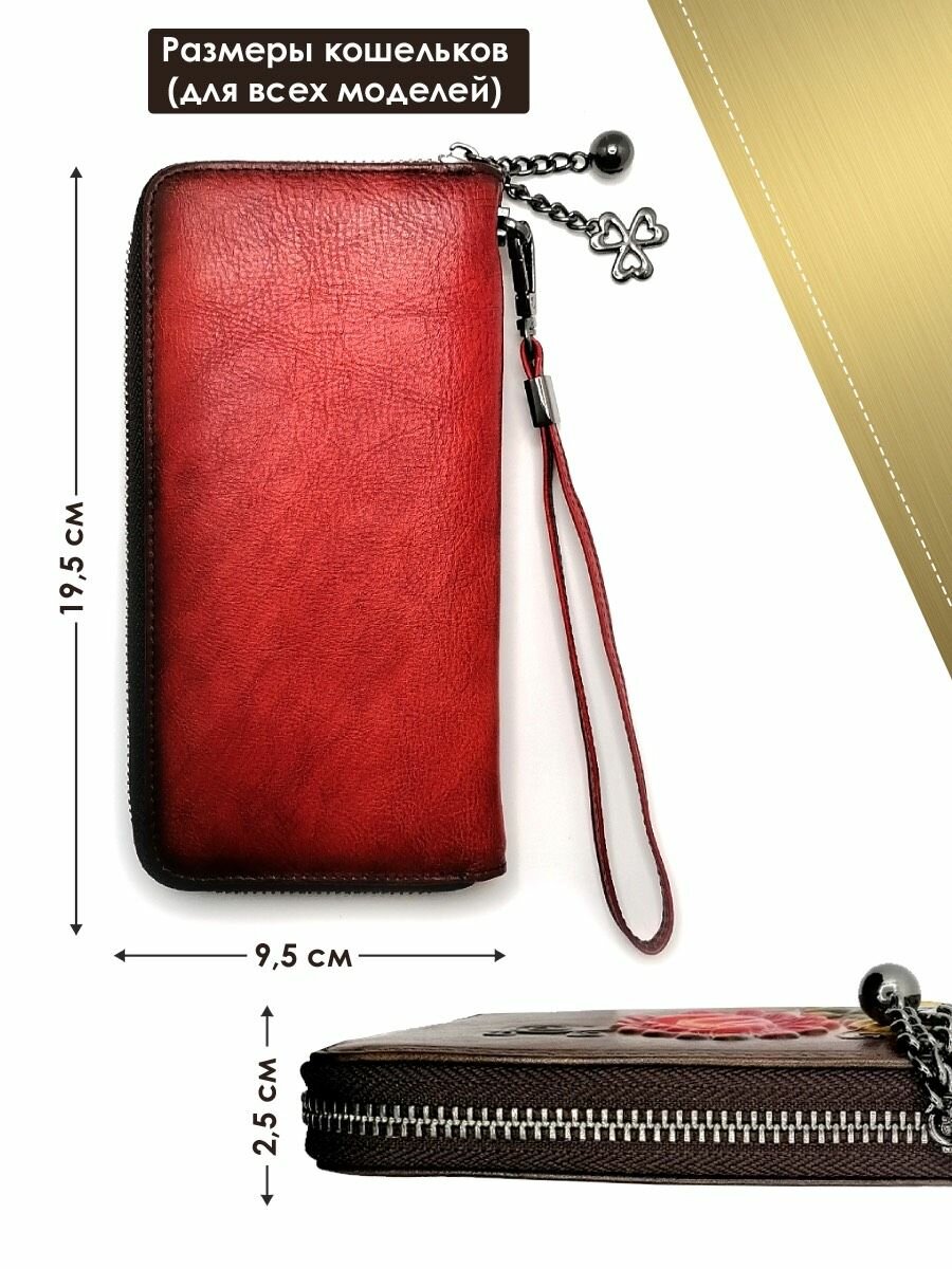 Кошелек женский натуральная кожа, тип клатч - портмоне, 100% кожаный с тиснением, бренд Dzett