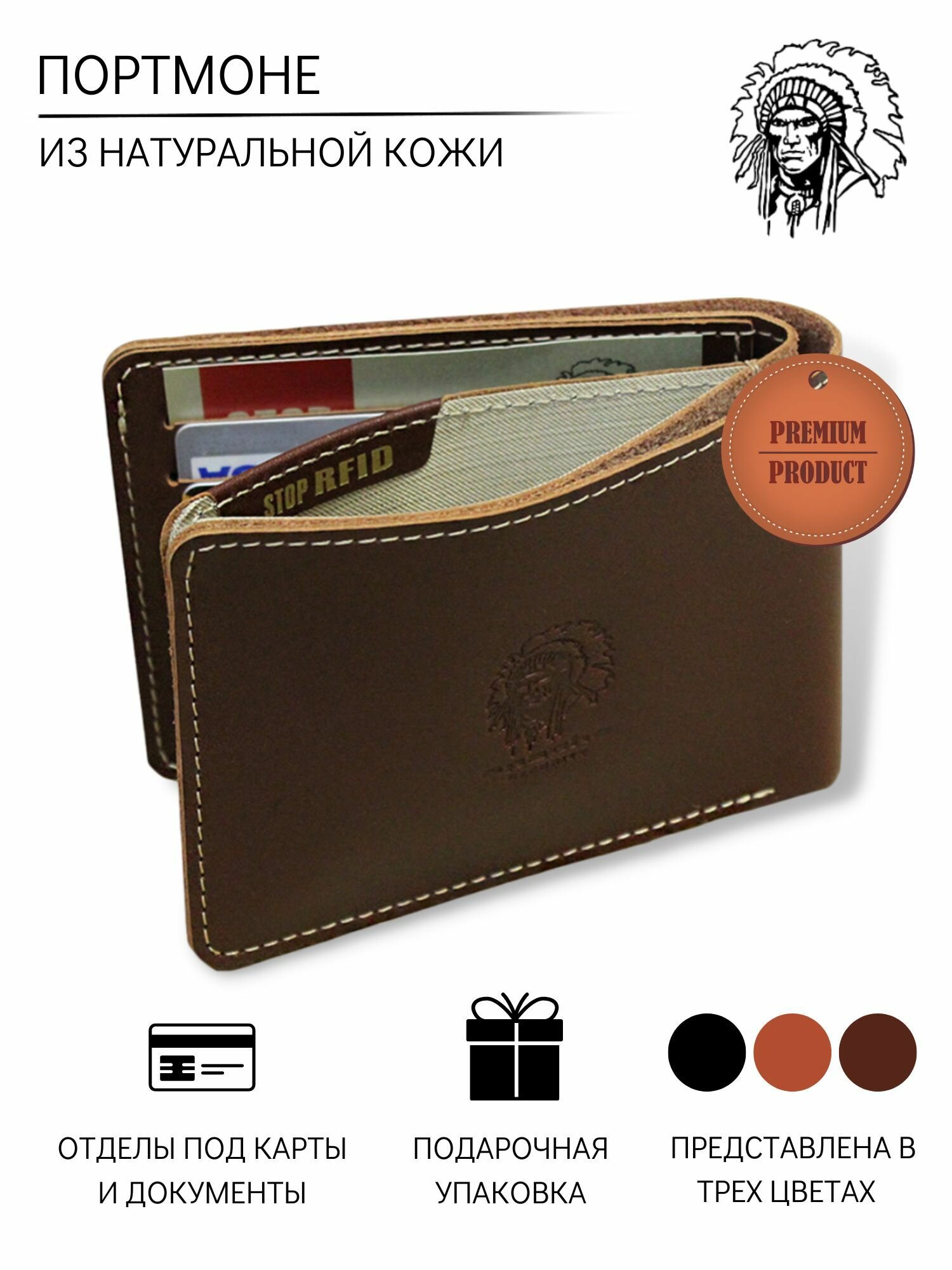 Портмоне Apache, фактура тиснение, коричневый интересное: