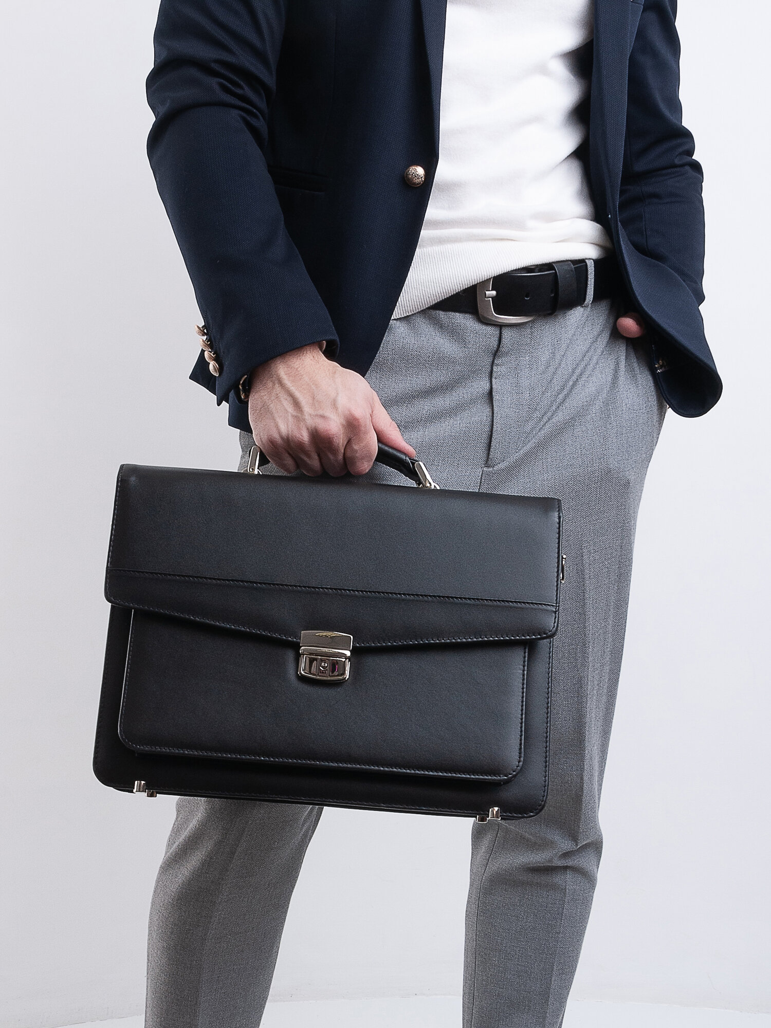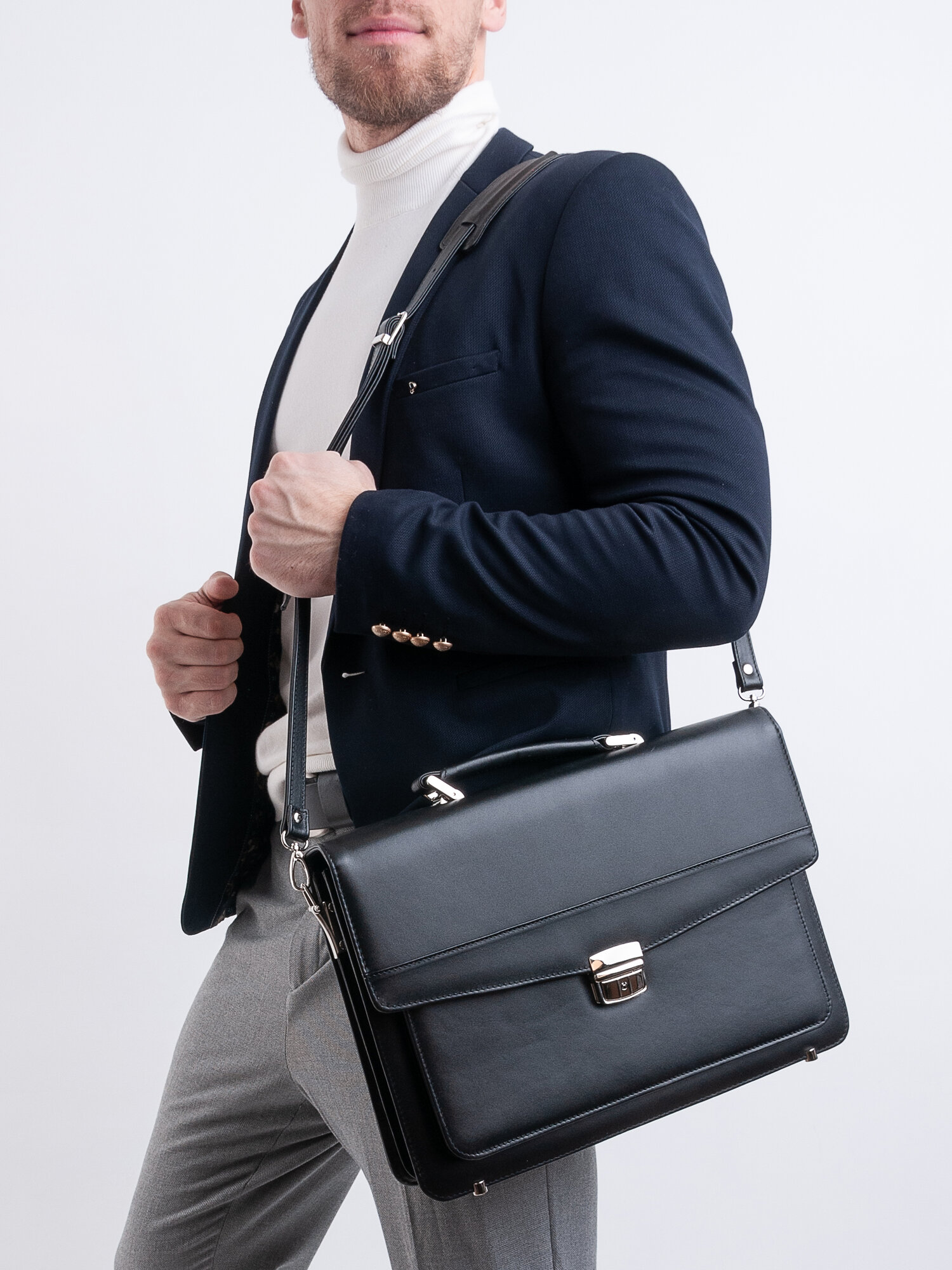 Портфель мужской Franchesco Mariscotti FM1 Вестерн, черный, натуральный кожа, 2 отделения