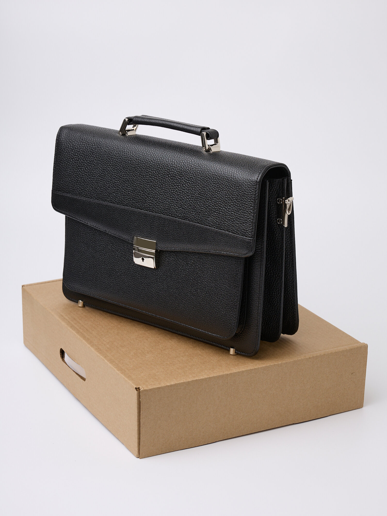 Портфель Franchesco Mariscotti, фактура тиснение, гладкая, черный