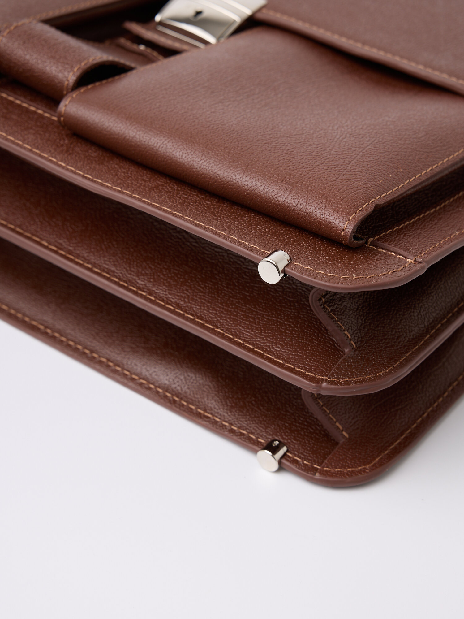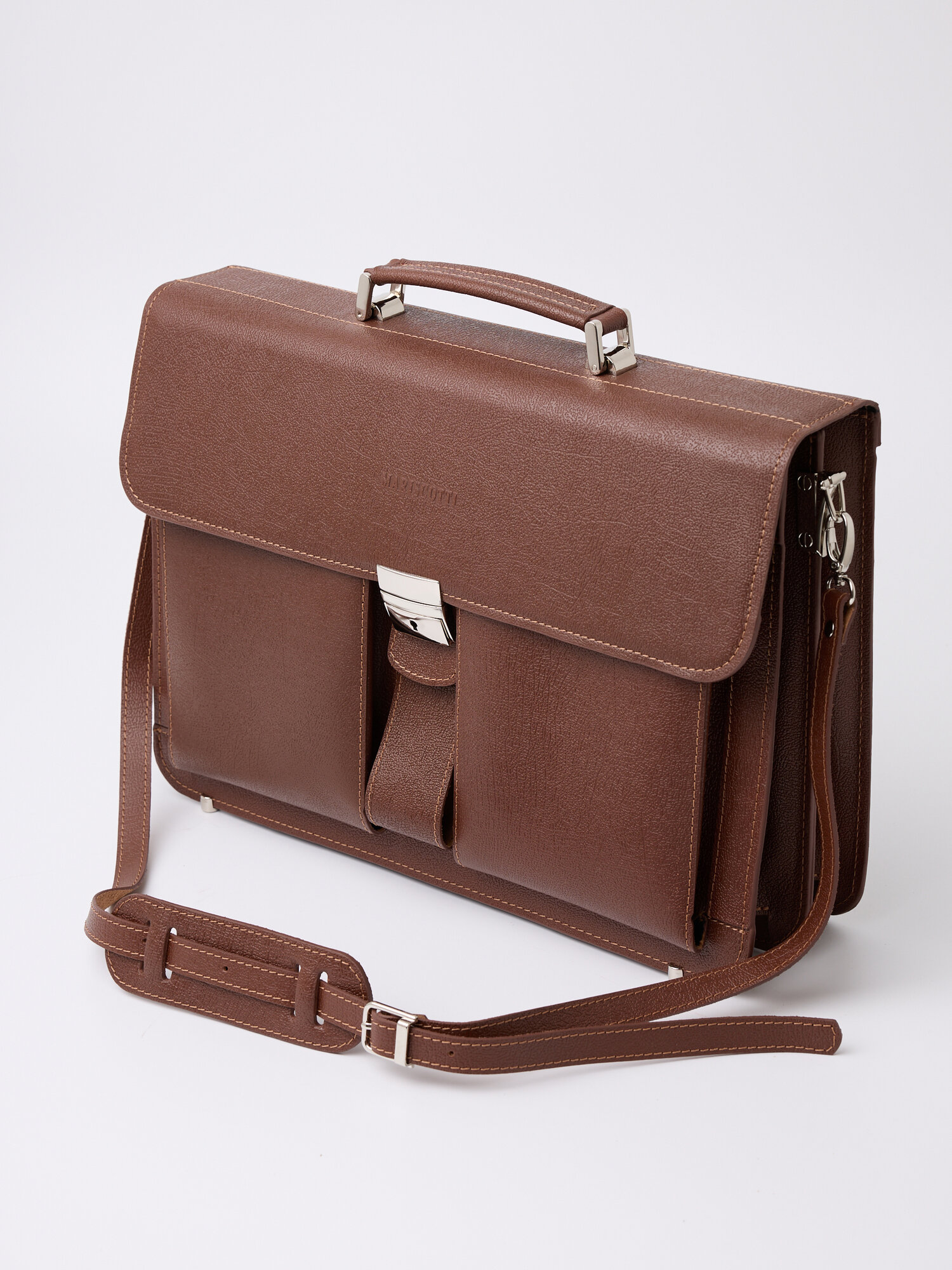 Портфель Franchesco Mariscotti, фактура матовая, гладкая, коричневый