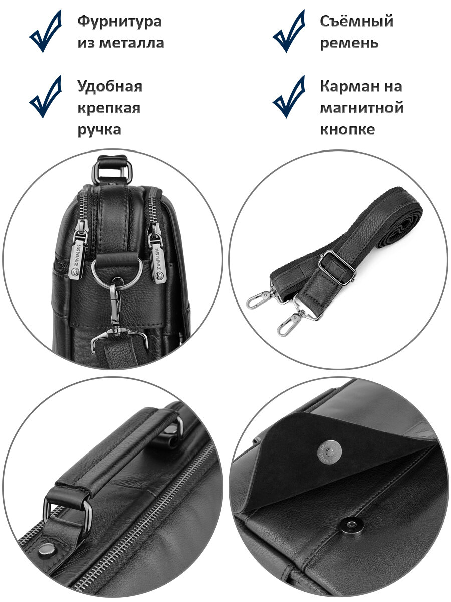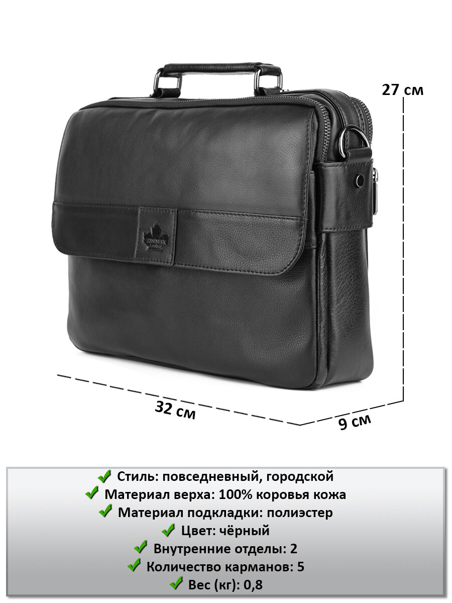 | Особенности модели | верхний клапан, вмещает А4, внешний карман, внутренний карман, плечевой ремень, съемный ремень |