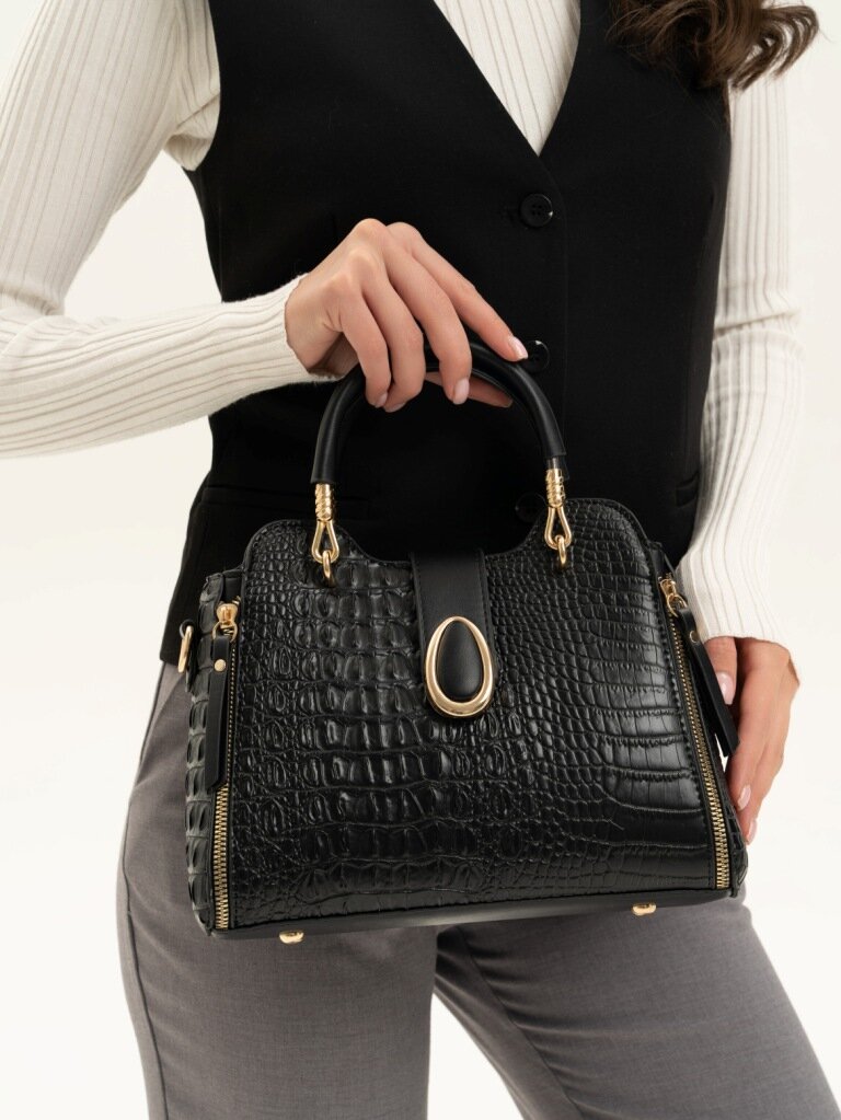 Сумка кросс-боди Bagevitto, фактура под рептилию, черный интересное: