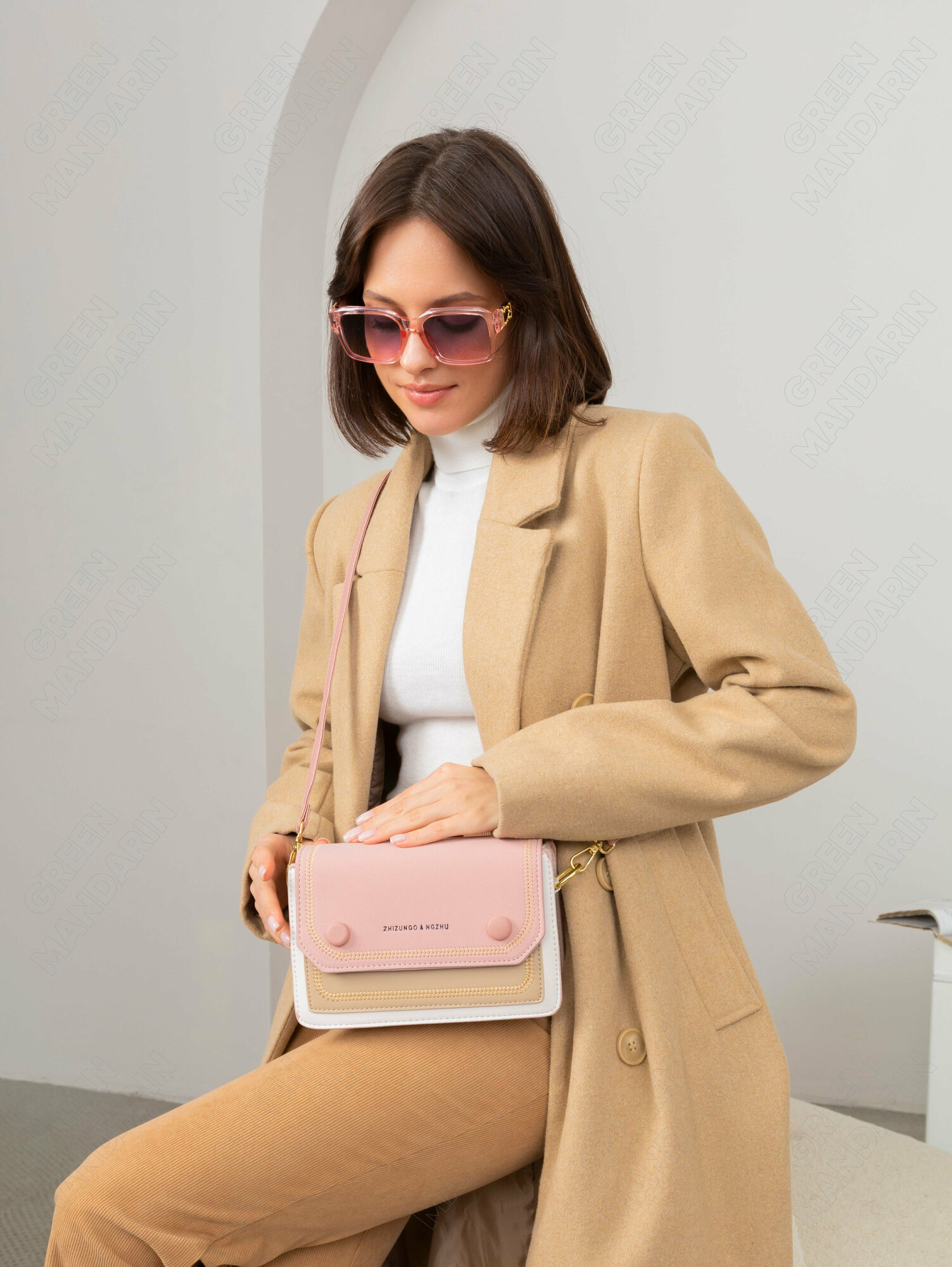 СохранитьСумка кросс-боди GREEN MANDARIN, фактура матовая, пудровый интересное: