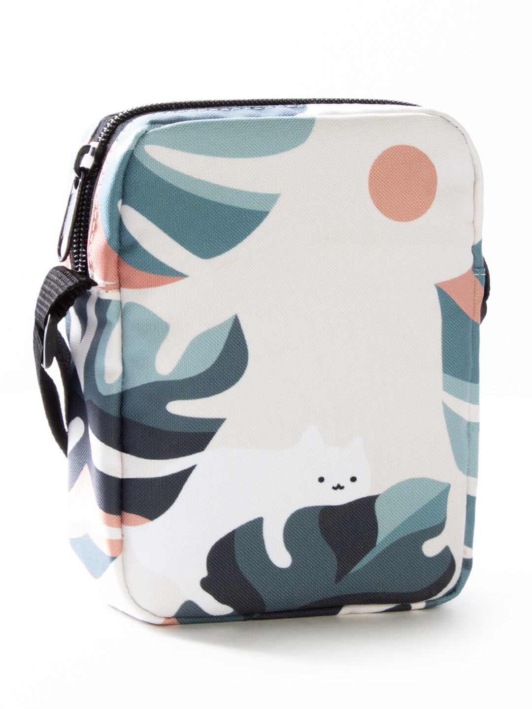 Мини-сумка мессенджер женская, мужская через плечо для телефона с принтом Тропические листья