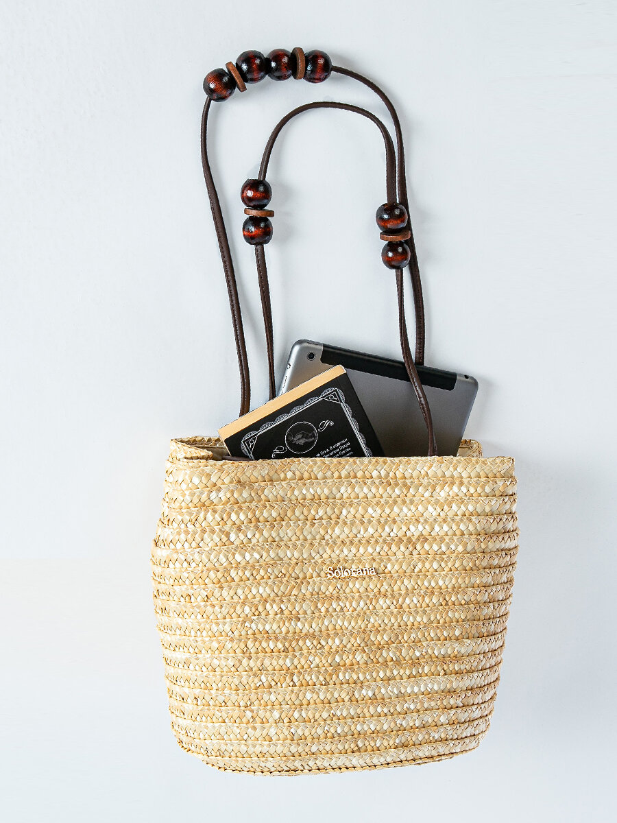 Сумка летняя женская пляжная соломенная,большая,бежевая,Solorana