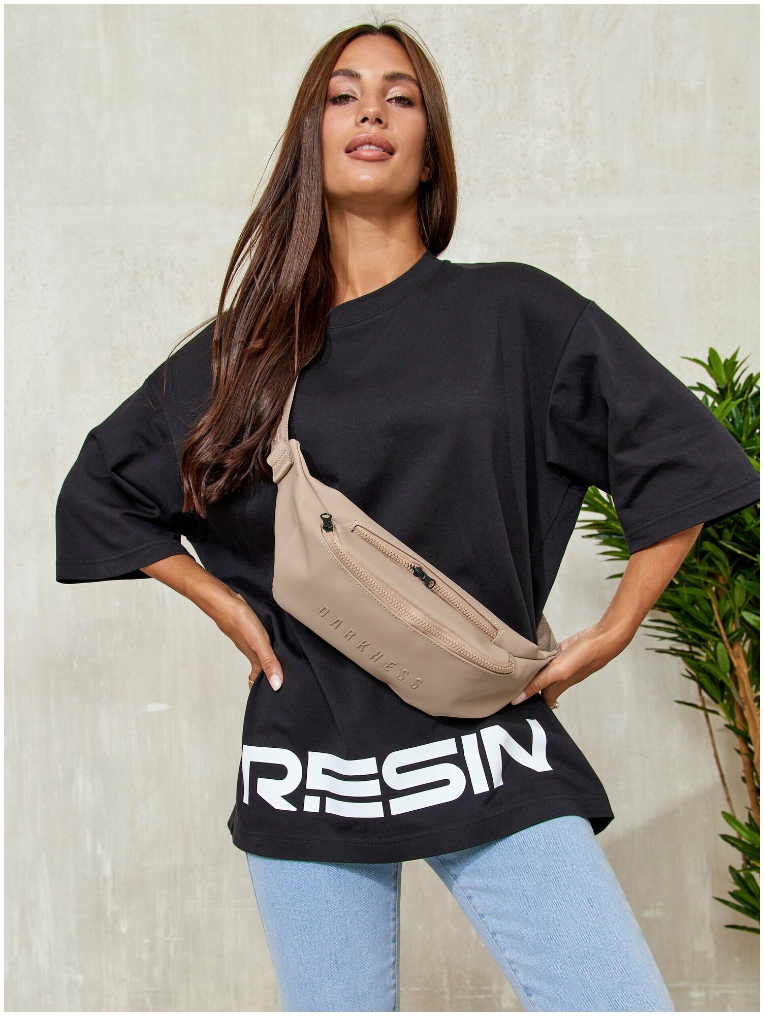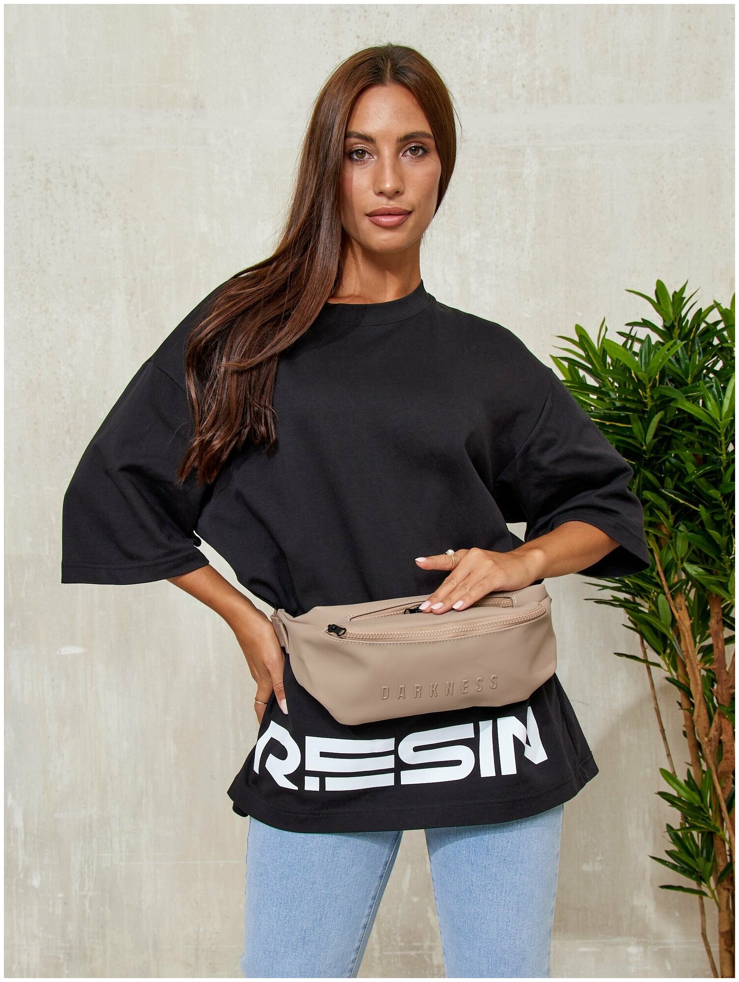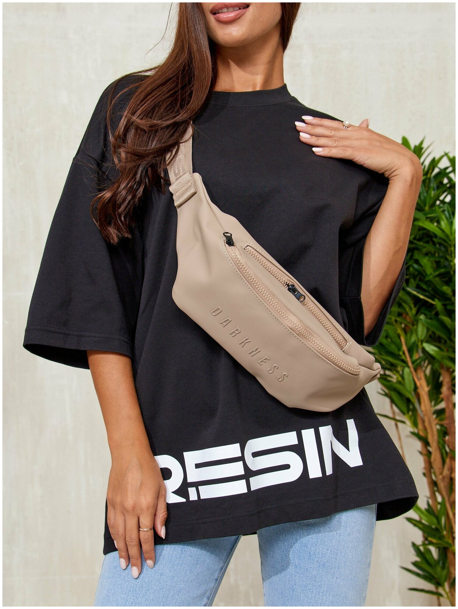 Сумка поясная RESIN, фактура матовая, бежевый интересное: