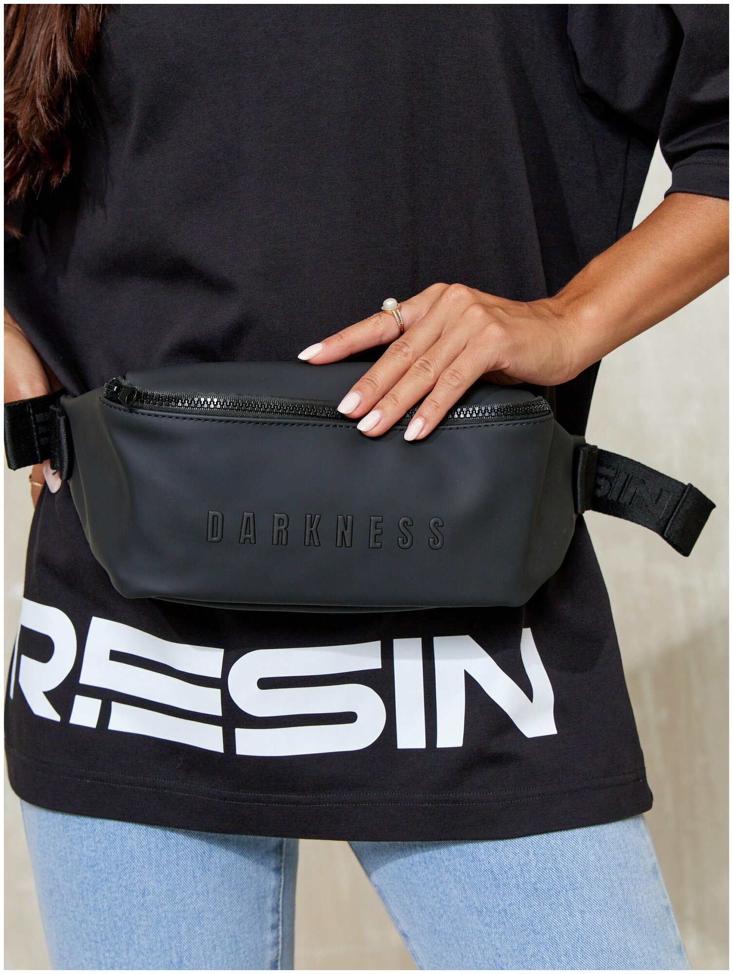 Сумка поясная RESIN, фактура матовая, черный интересное: