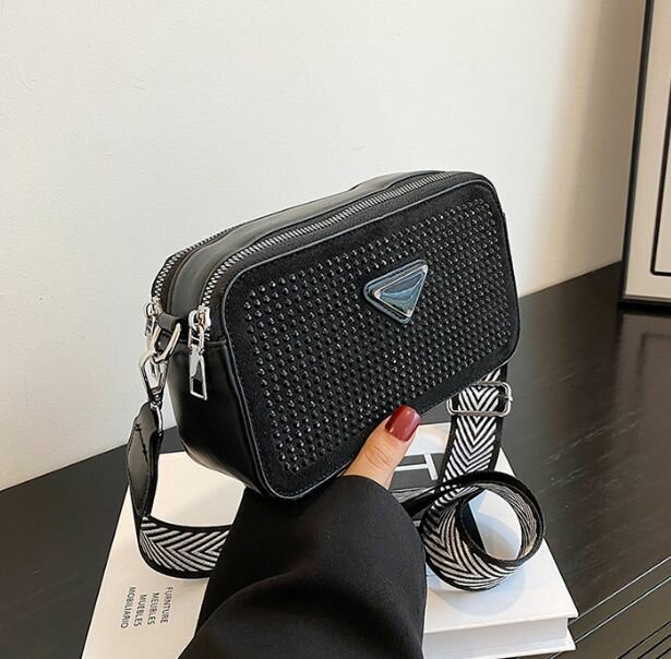 Сумка женская BOTTONCINI через плечо, мини мессенджер со стразами, черный, р-р 21х7х12 см