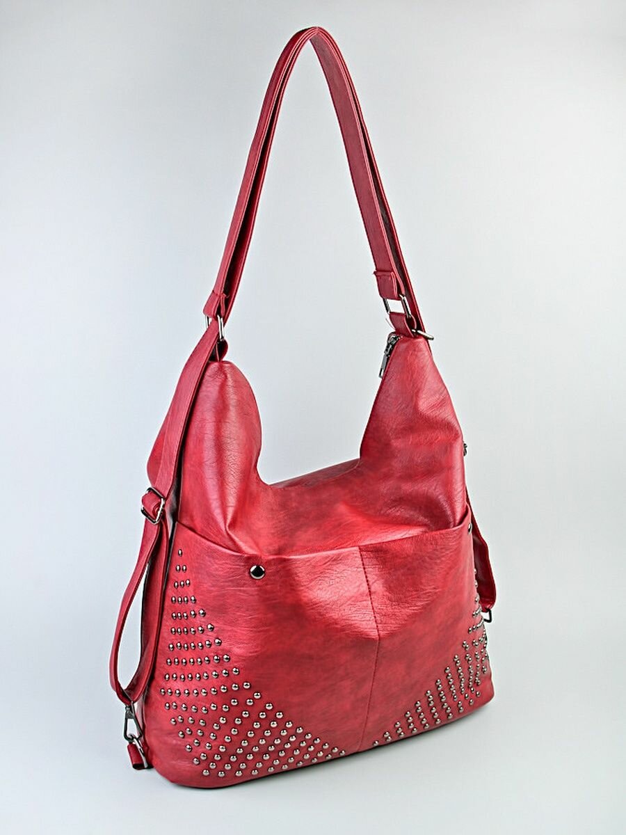 Сумка женская "Хобо" из эко-кожи, модель "6615"Красная