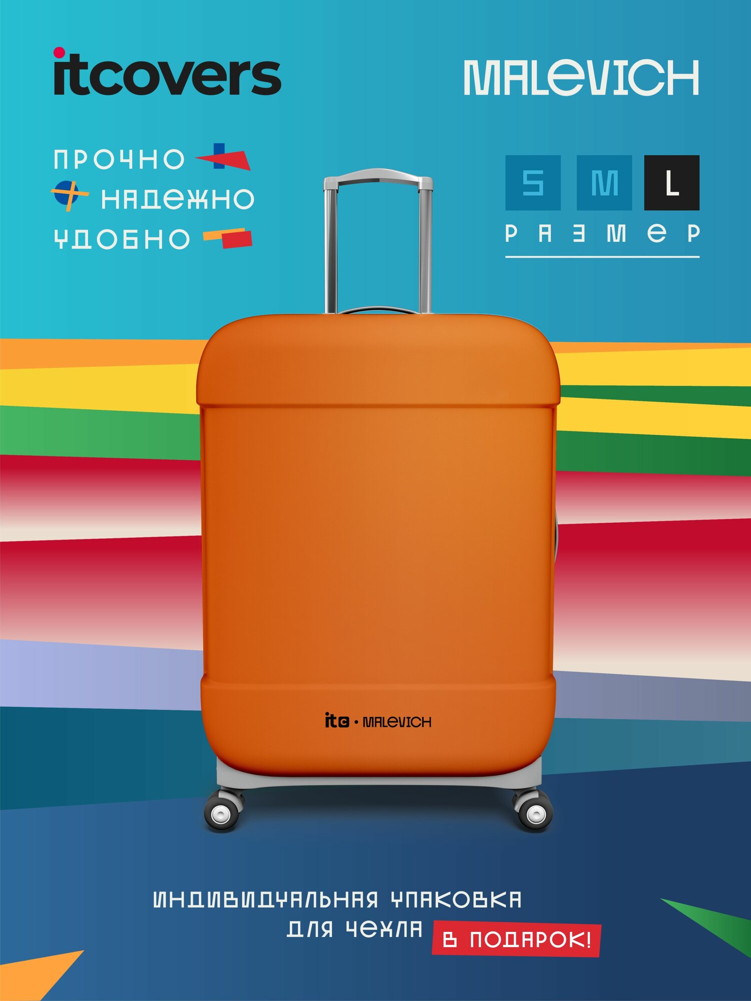 Оранжевый чехол на чемодан L iTCOVERS "Malevich", плотный защитный чехол для чемодана размер L (70-80 см)