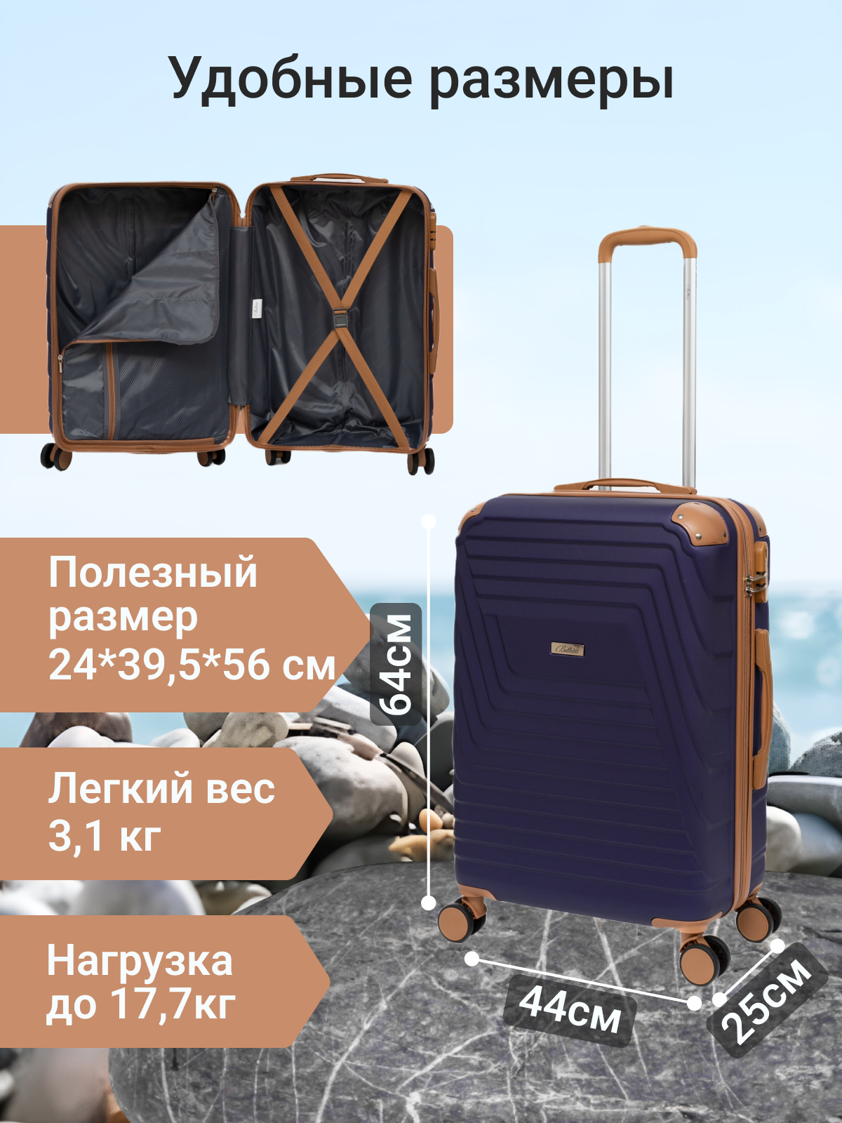 СохранитьЧемодан Belletti, 53 л, размер M, синий/коричневый интересное: