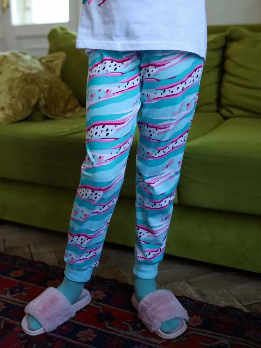Пижама Miko Yumi, размер 122, белый, зеленый, розовый