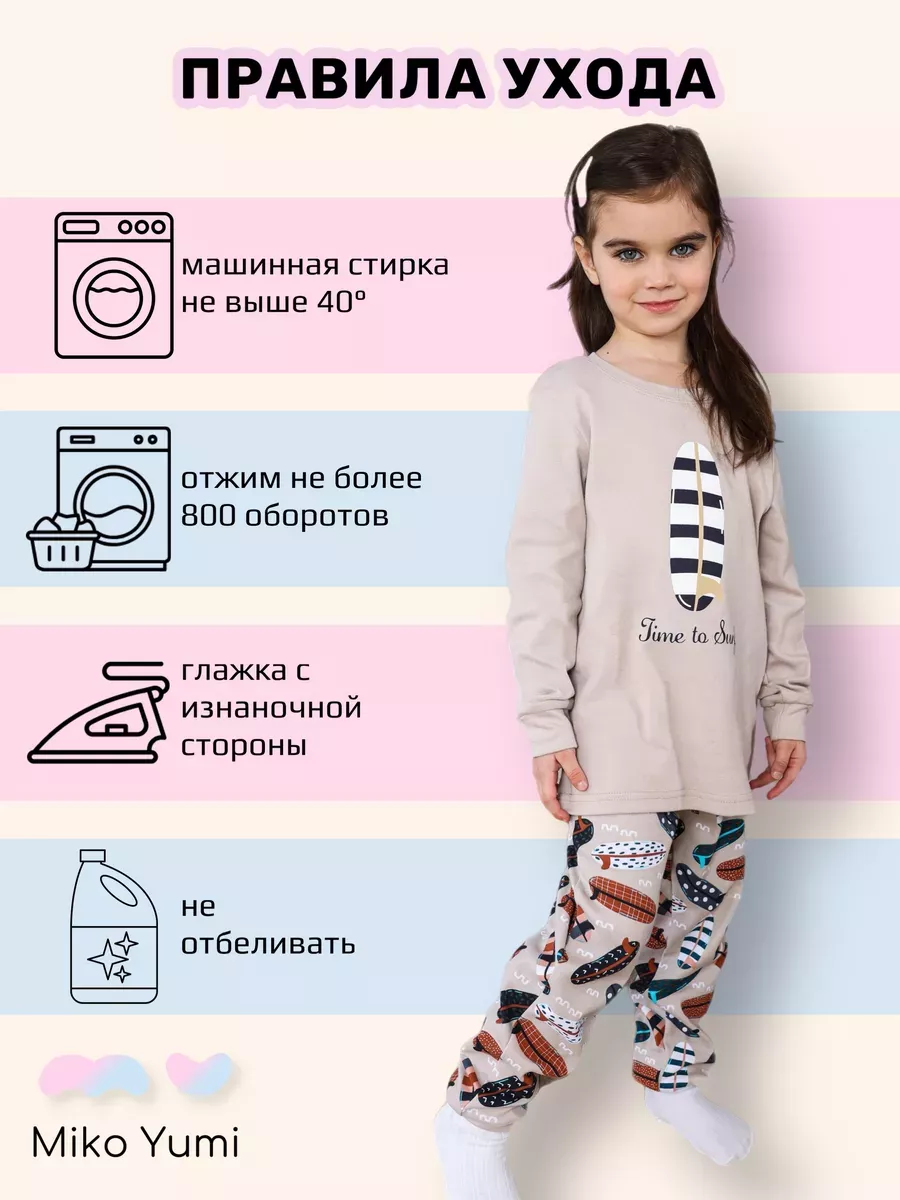 Пижама детская легкая с длинным рукавом Miko Yumi размер 122